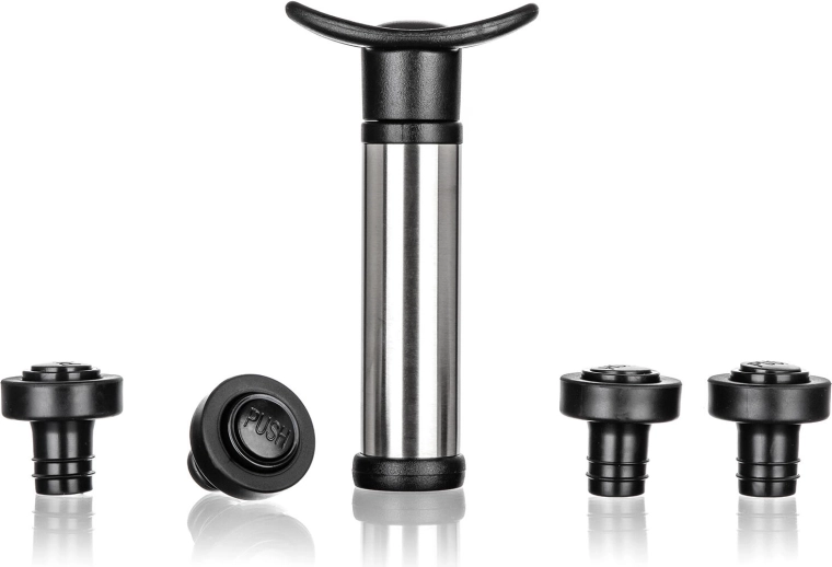 Skabelsen af vakuum reducerer oxidation, så en åbnet flaske bevarer sin fulde smag og duft i længere tid. Sættet er kompatibelt med de fleste standard vinflasker og er et fremragende tilbehør til enhver vinelsker.