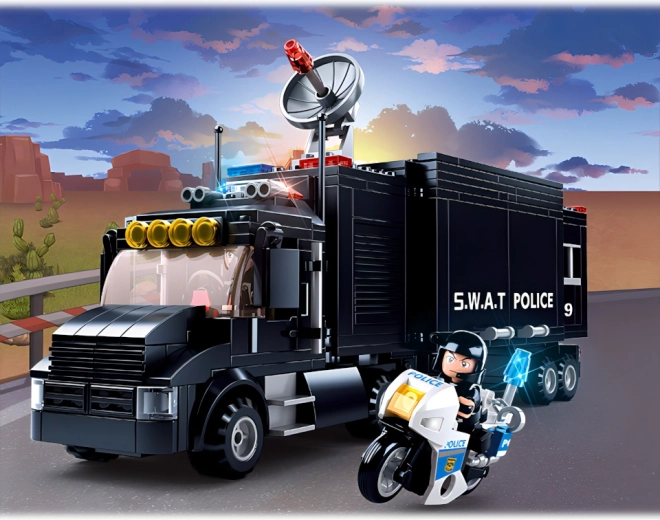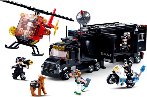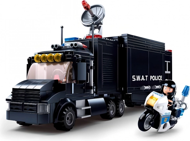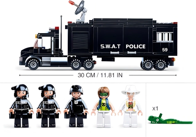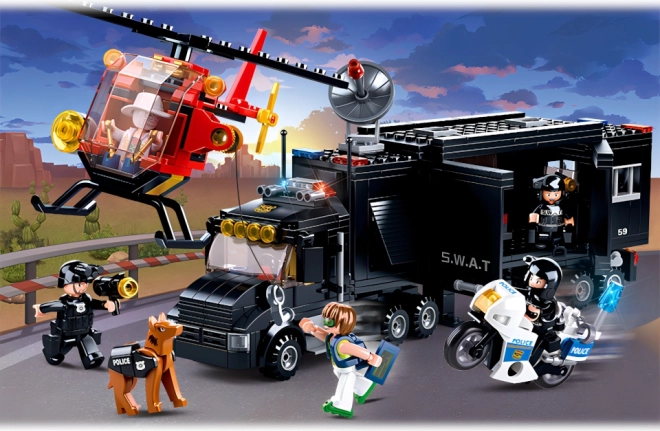 Sættets hovedattraktion er en sort SWAT-lastbil – en mobil kommandobase med realistiske detaljer, der fungerer som centrum for alle politiaktioner. Ideel til taktiske forflytninger og planlægning af indsatser.