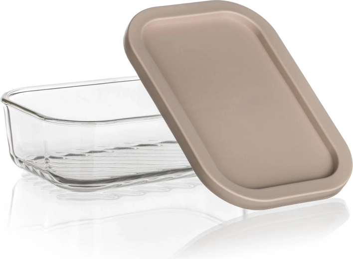 Glasdelen er varmebestandig og egnet til både bageovn og mikroovn (uden låg), hvilket gør den til et fremragende valg til bagning, opvarmning og servering. De kompakte mål 16 × 11 × 5 cm gør det let at opbevare i køleskab og fryser og sparer plads i køkkenskabene.