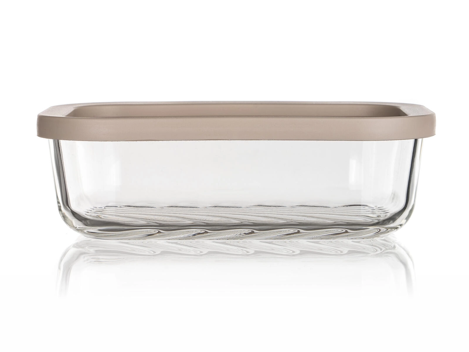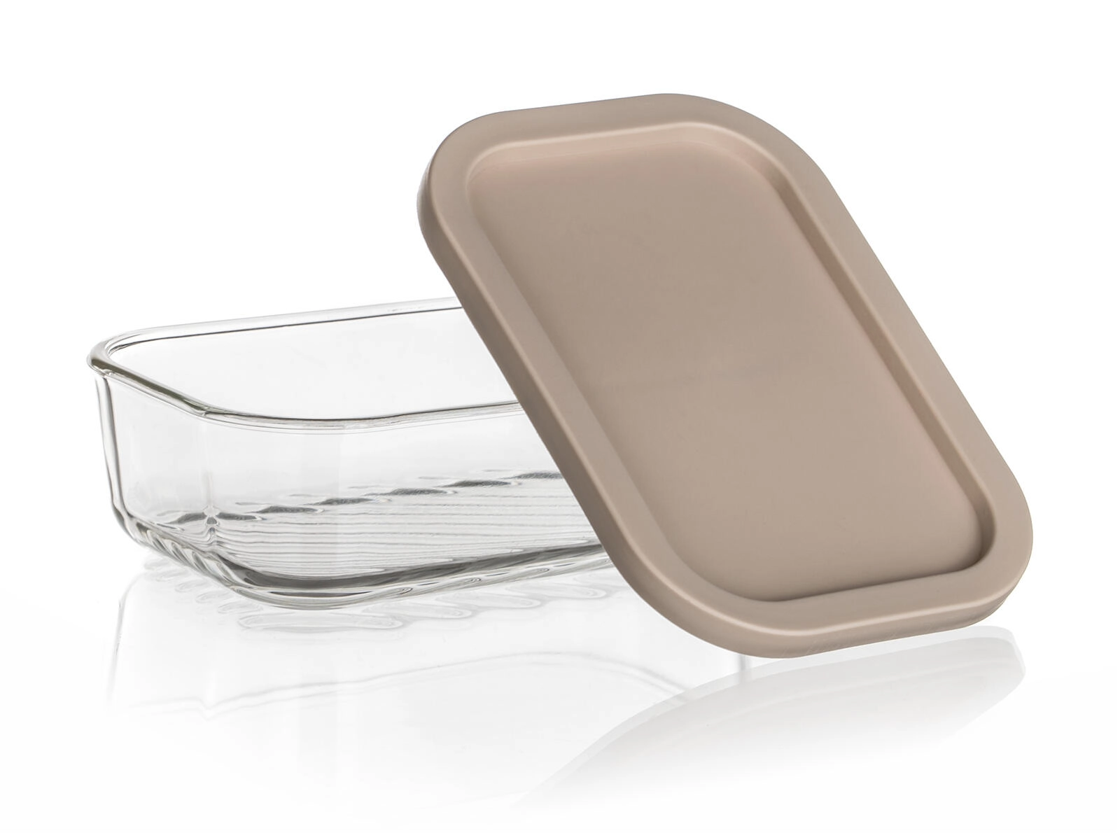 Glasbeholderen er varmebestandig og ideel til bagning og opvarmning. Brug låget uden for ovn og mikroovn.