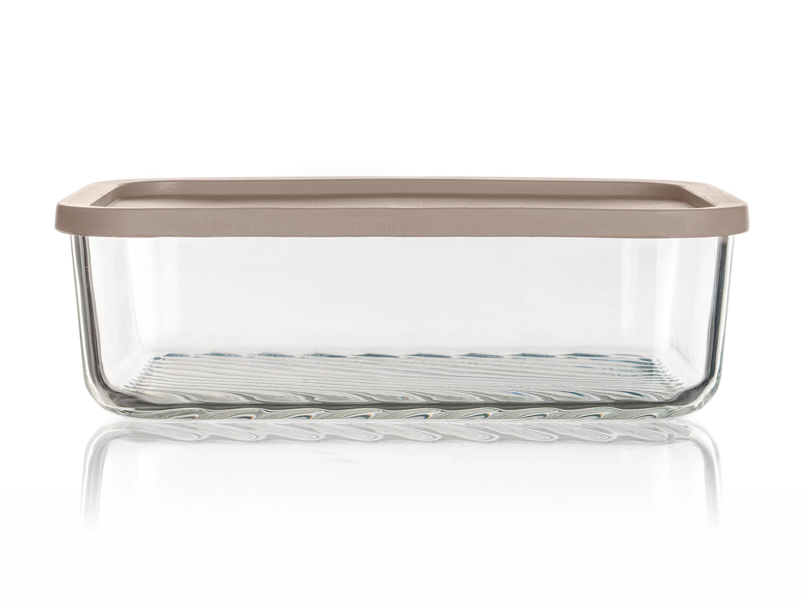 Den praktiske glasbeholder WAVE på 1,55 l er ideel til daglig opbevaring af mad, forfrysning og bagning. Det holdbare glas kan bruges i ovn og mikroovn (uden låg), mens det plastiske låg i latte-nuance sikrer pålidelig forsegling og langvarig friskhed. Takket være den rektangulære form passer den perfekt i køleskab, spisekammer og taske på farten.