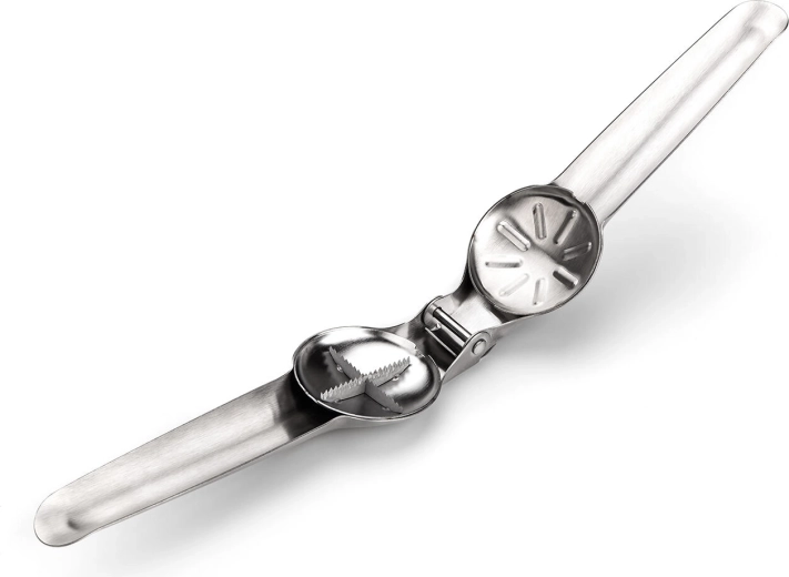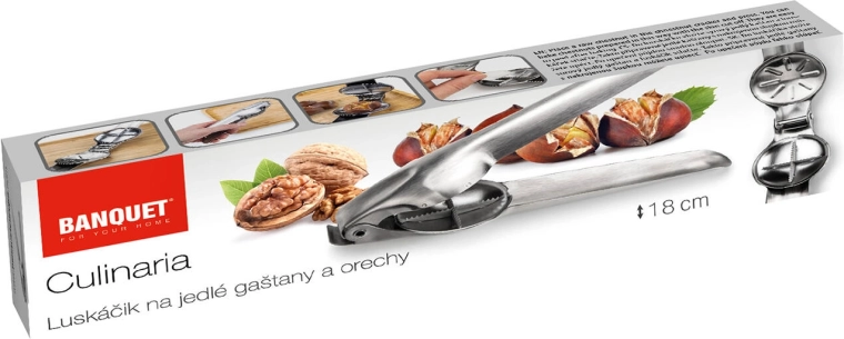 Den robuste nøddeknækker af kvalitets rustfrit stål er en ideel hjælper til daglig brug i køkkenet. Den klarer let valnødder og hasselnødder, mandler samt friske spiselige kastanjer. Ergonomiske håndtag giver et sikkert greb, og løftemekanismen reducerer indsatsen ved knækning af hårde skaller.
