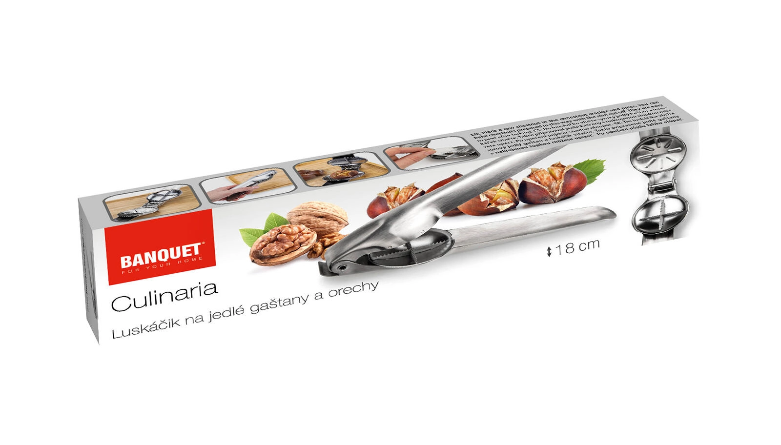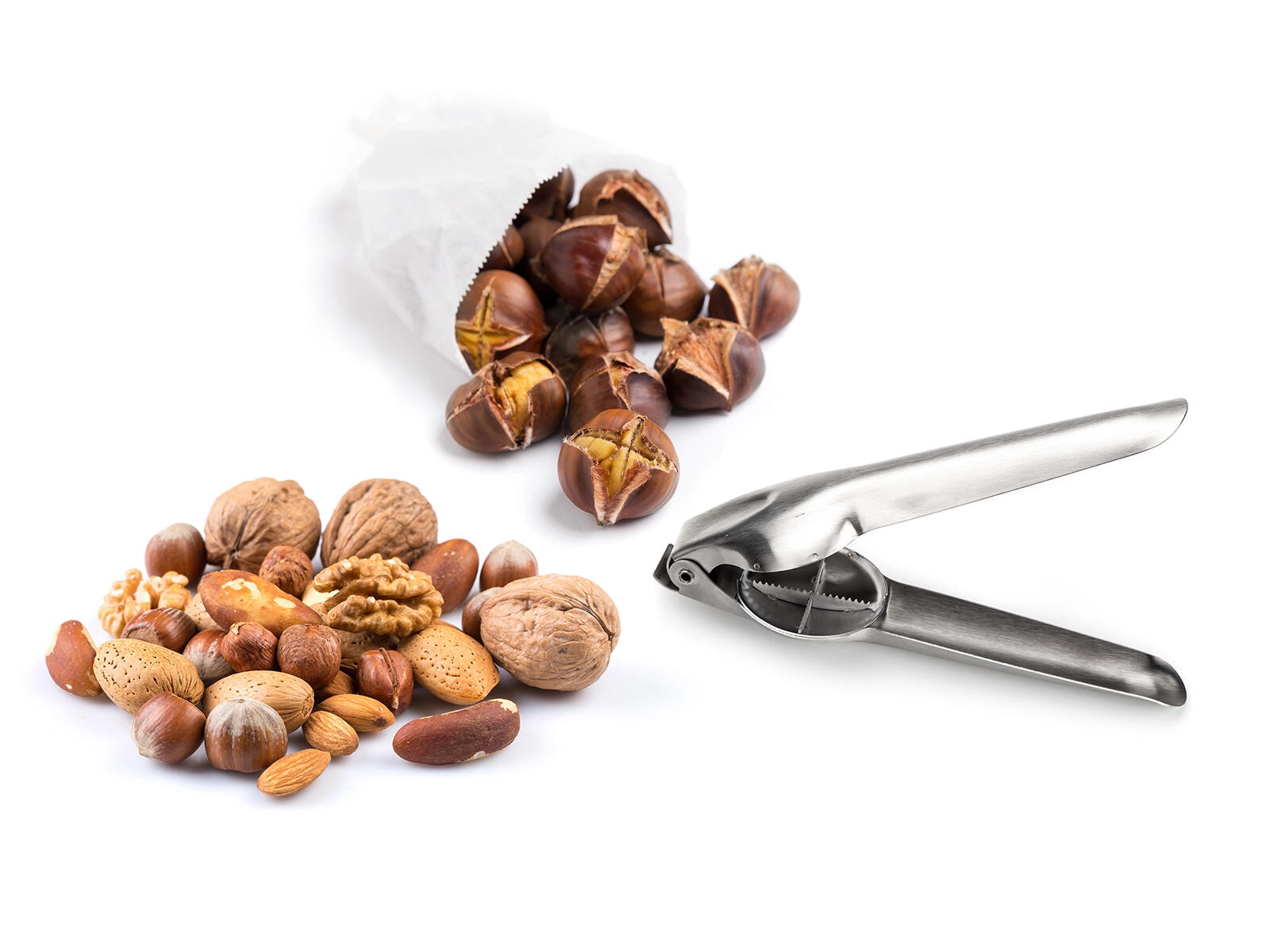 Den særlige form på kæberne og det stabile greb gør det nemmere at snitte og knække kastanjer før ristning.