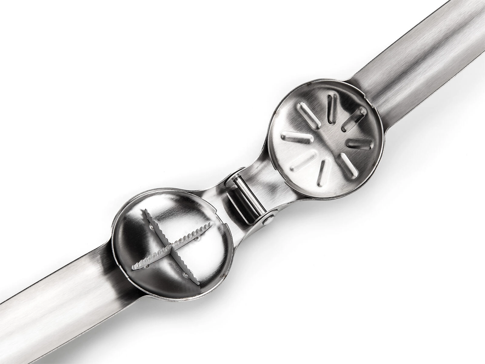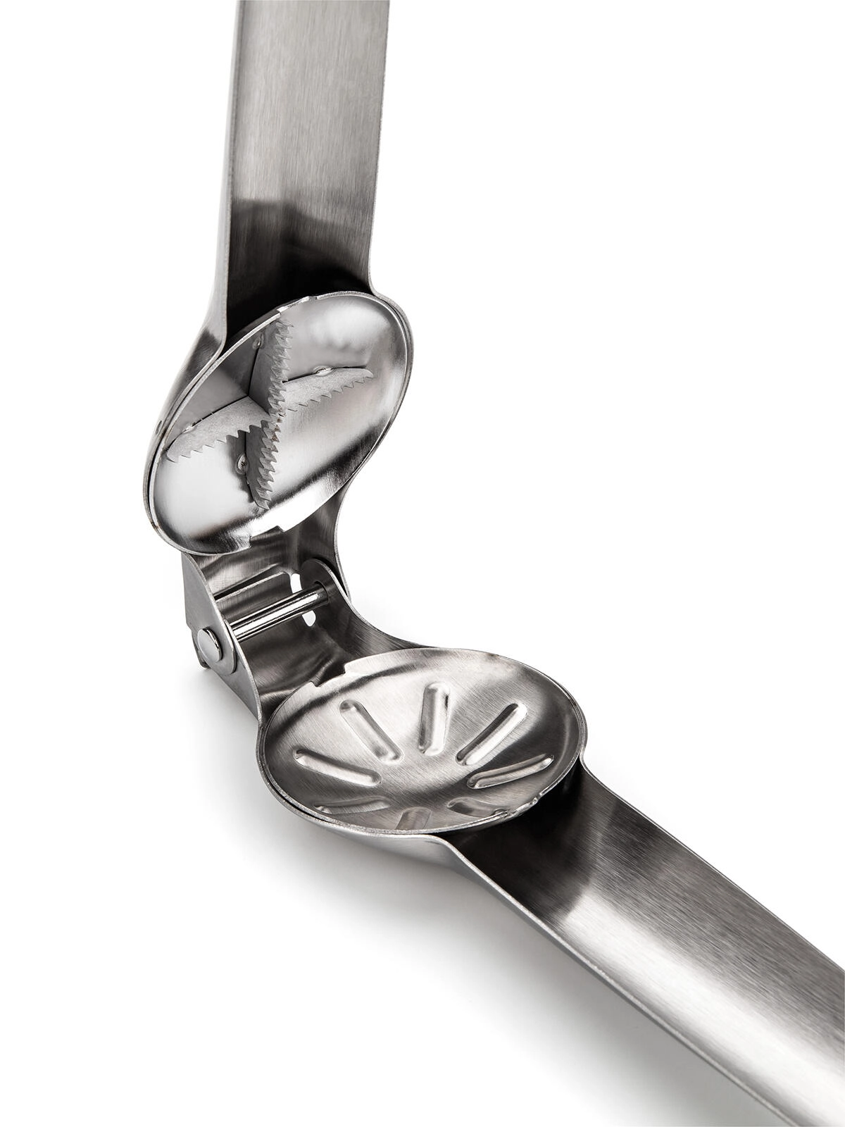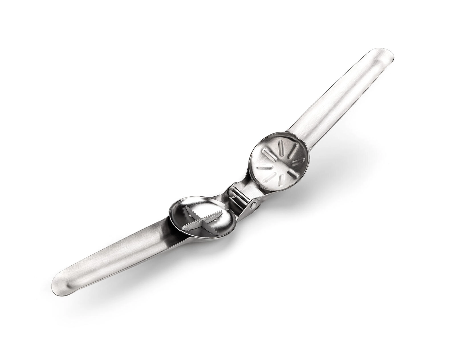 Lange håndtag og riflede kæber muliggør præcis og sikker knækning af skallen uden at mase kernen.