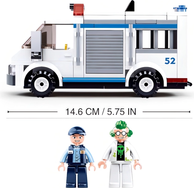 Byg fængselsvognen og kør ud på opgave. Den åbningsbare bagdel og plads til den anholdte sikrer autentisk leg.