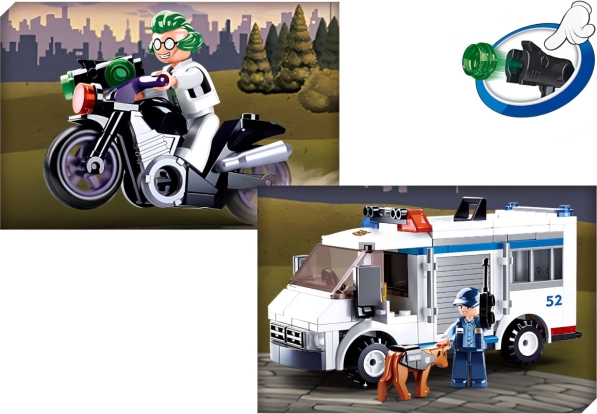 Byg din egen politiscene med Sluban politi og oplev en adrenalinfyldt flugt på motorcykel samt indsats med fængselsvognen. Sættet er fremstillet af kvalitets-, holdbar og sikker ABS-plast og leveres med en overskuelig vejledning i en farverig æske.