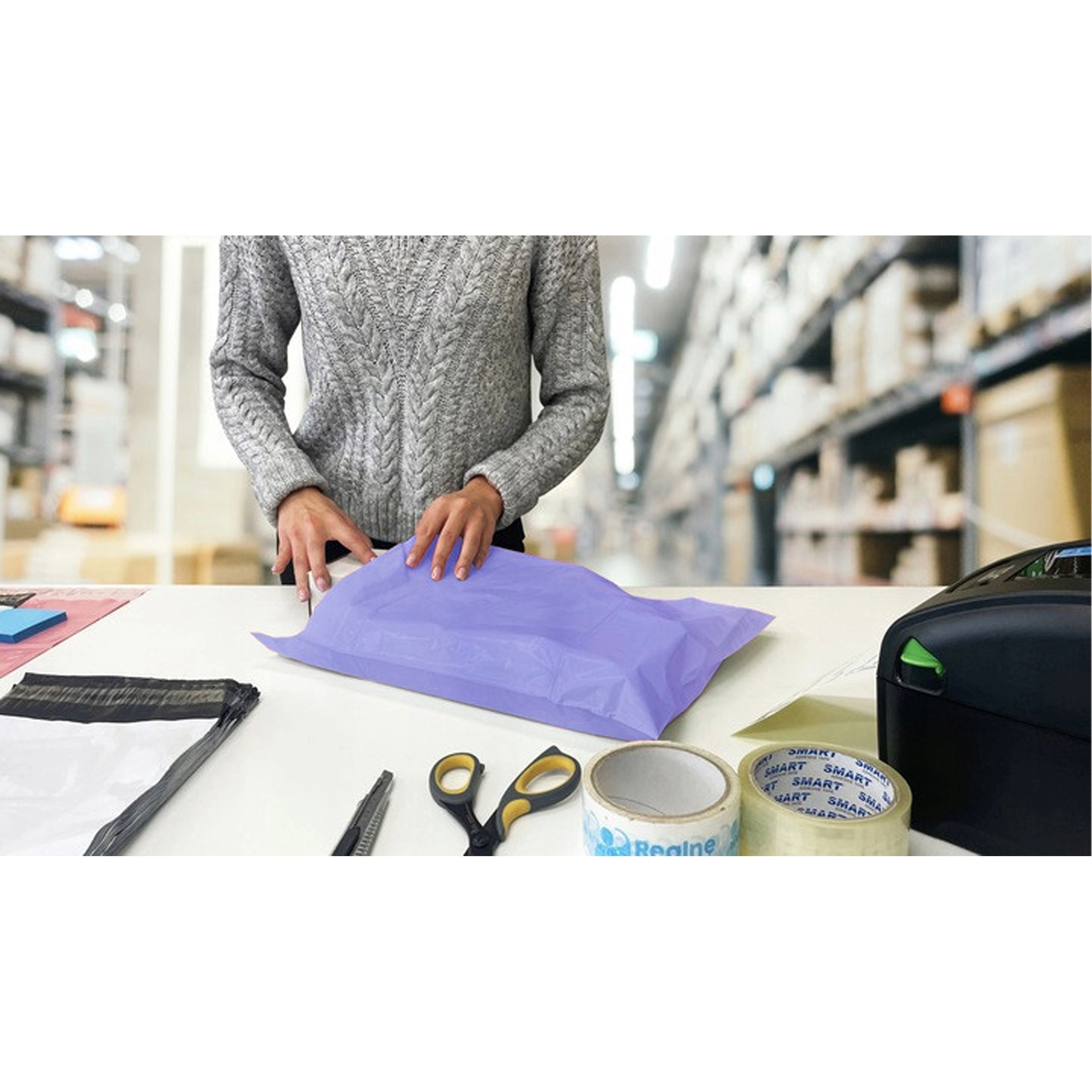 Disse kurér-plastkuverter er ideelle til webshops og enkeltstående sælgere. Det lette, holdbare og vandtætte design i en stilfuld lilla farve beskytter varerne mod fugt og snavs, mens den selvklæbende strimmel fremskynder klargøringen og reducerer pakkeomkostningerne.