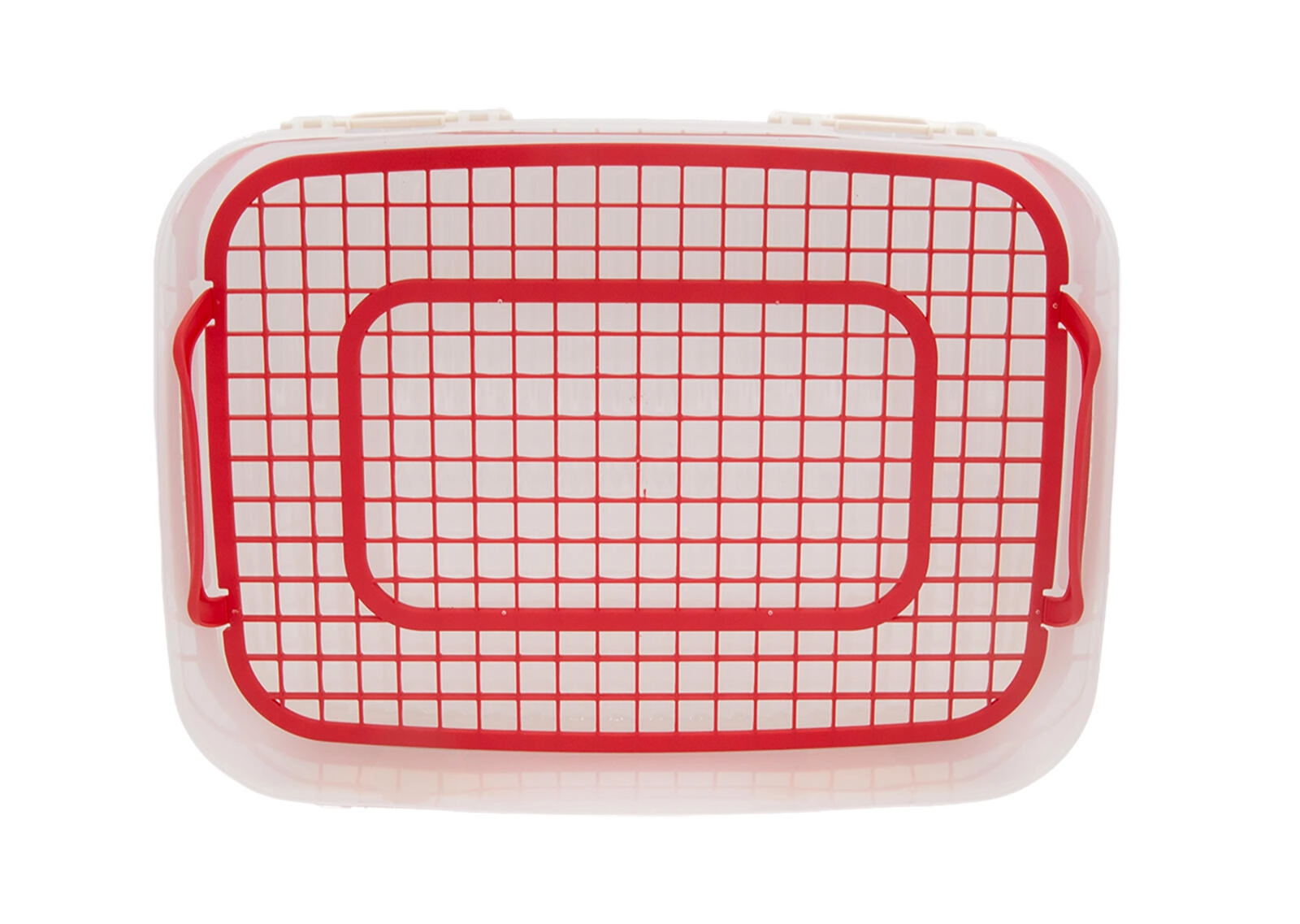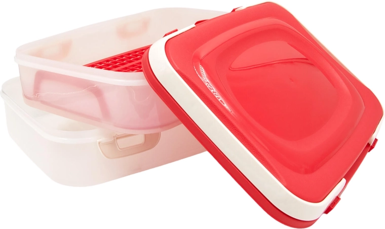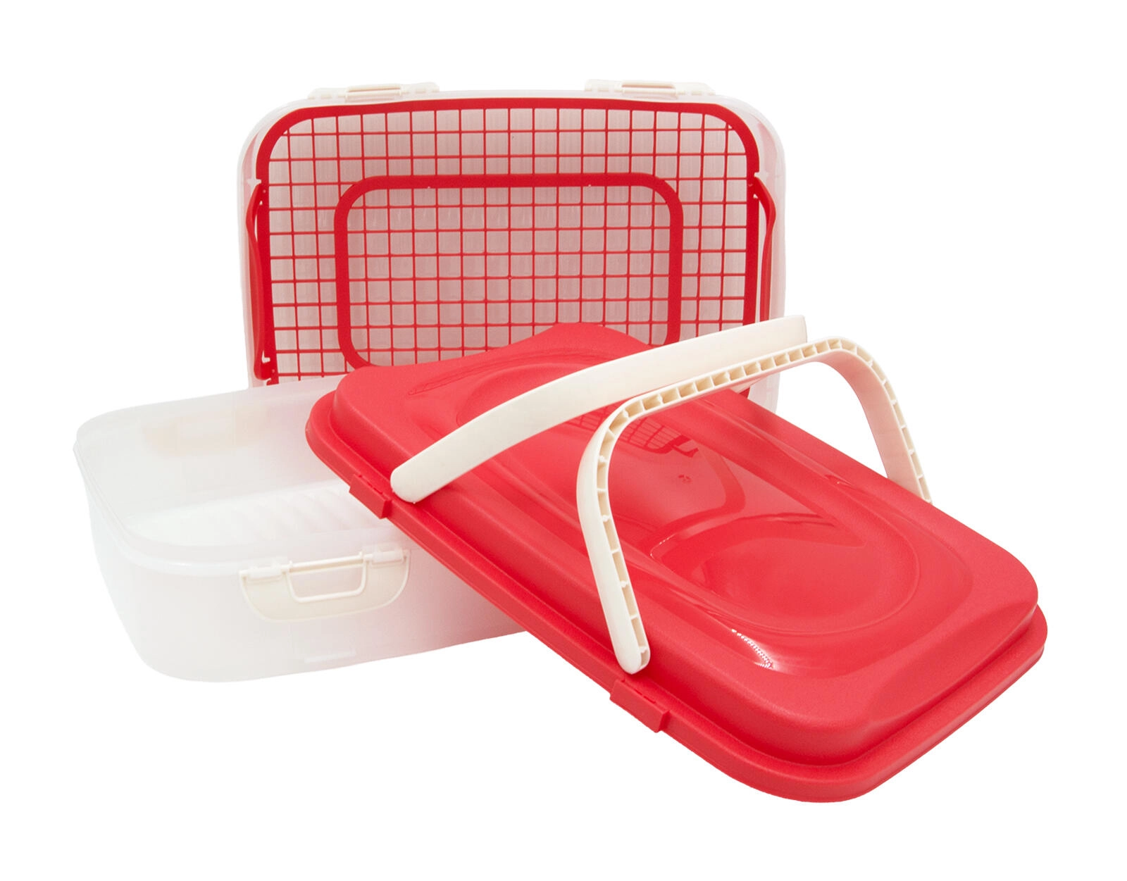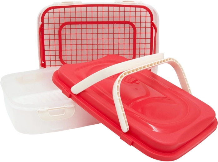 Takket være den indre rist med greb kan du nemt tage indholdet ud uden rod. Kassen er ideel til picnics, havefester, besøg og daglig transport til arbejde. Den er let at rengøre og egnet til gentagen brug.