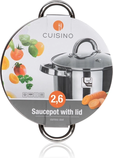CUISINO-gryden i rustfrit stål kombinerer elegant udseende med praktisk anvendelighed til hverdag. Takket være det kvalitetsrustfri materiale og glaslåget har du madlavningen under kontrol, mens den indvendige måleskala gør det nemt at måle væsker nøjagtigt. Den blanke finish på både ydre og indre overflade giver gryden et moderne look og gør vedligeholdelsen lettere.