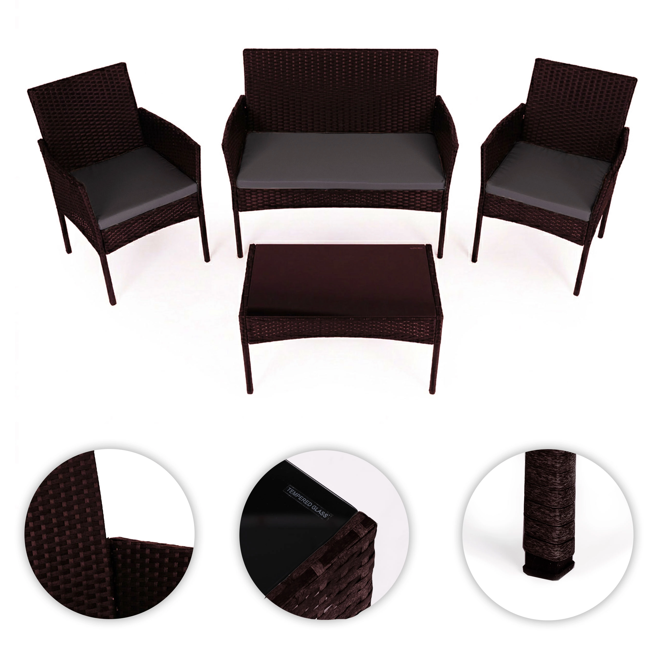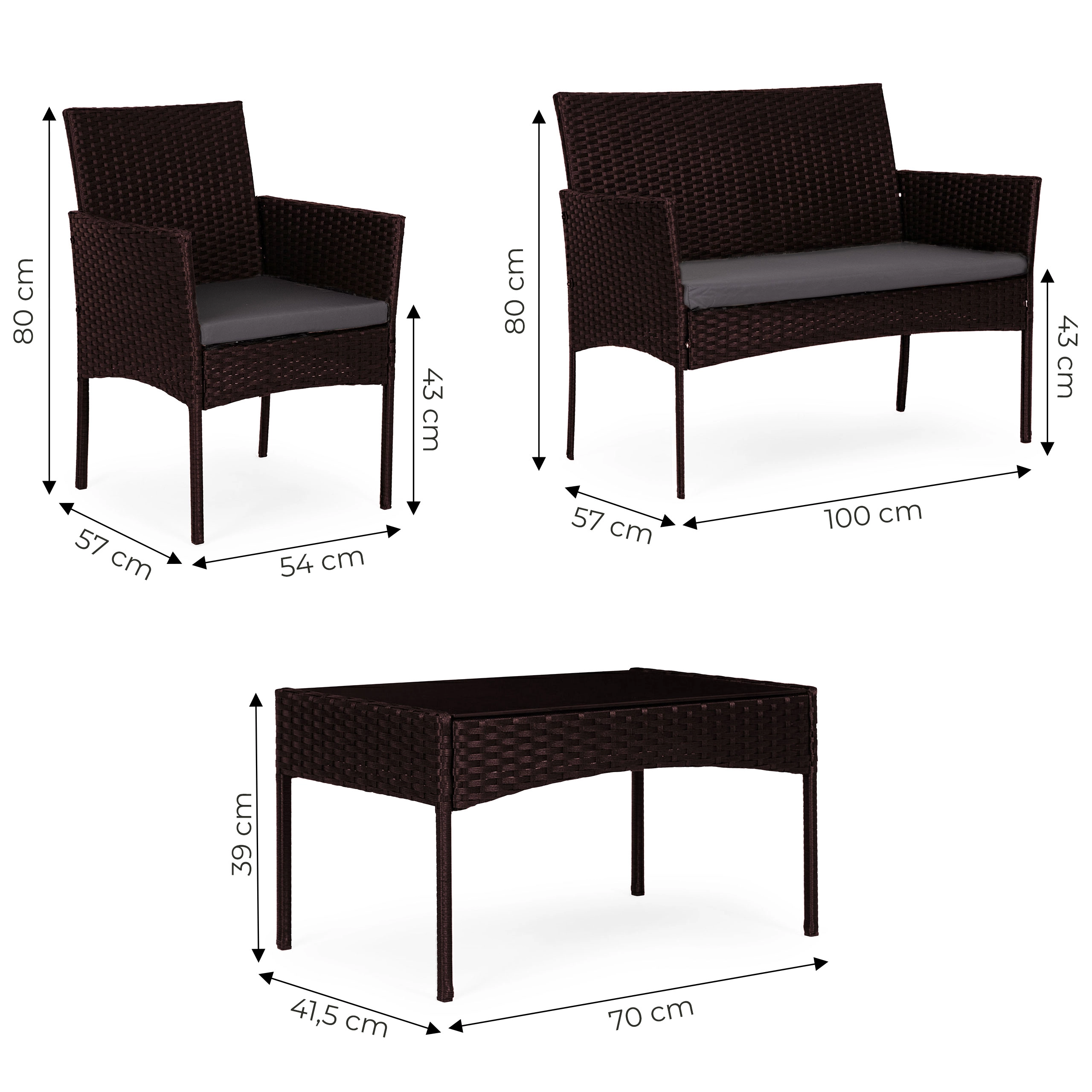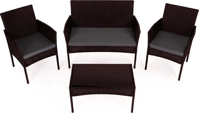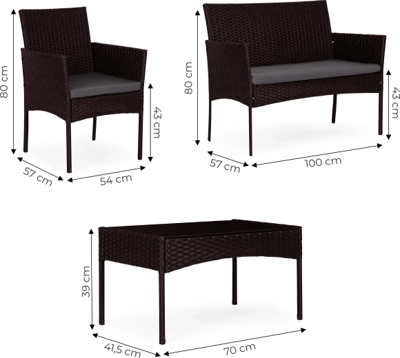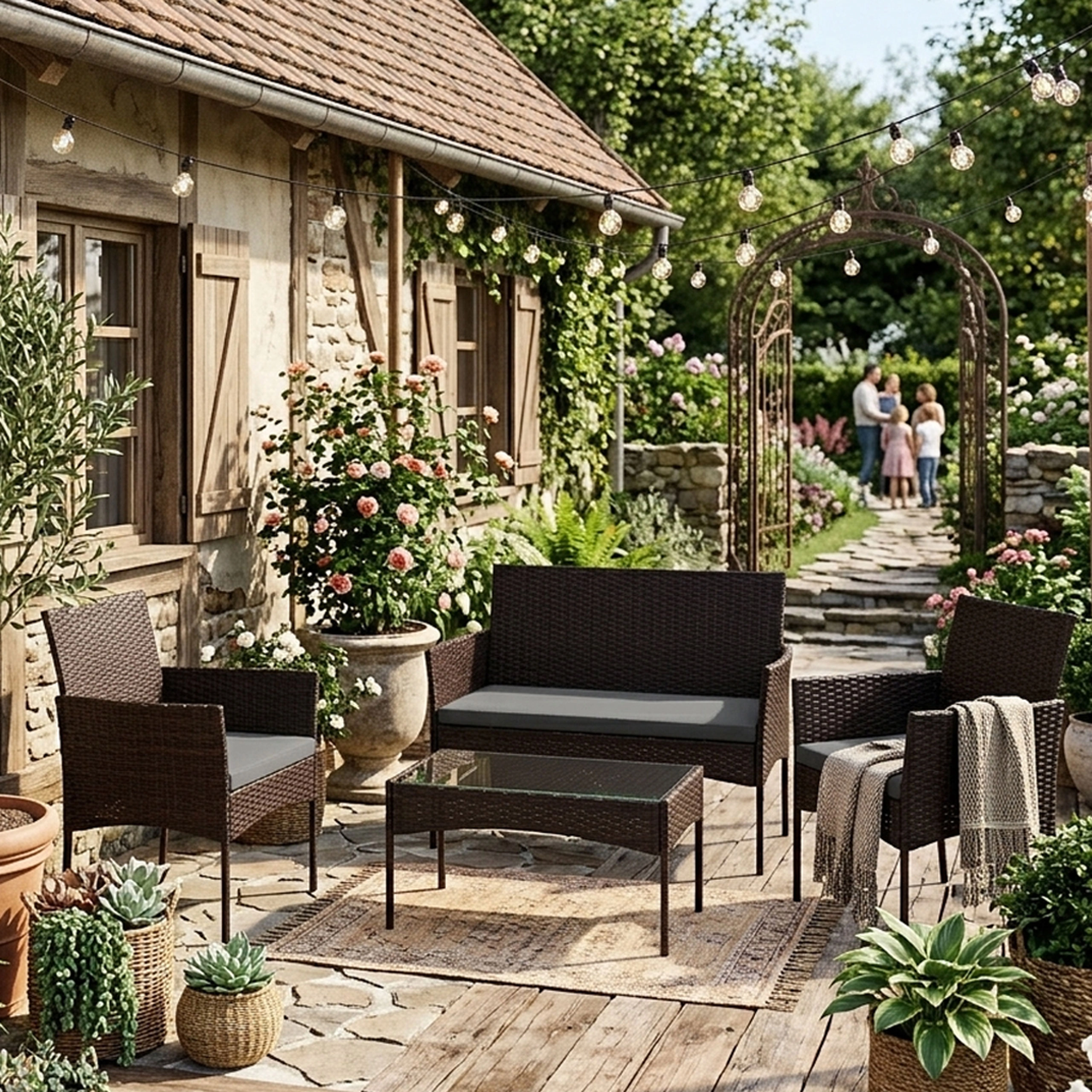 Et elegant havesæt i mørkebrun rattan-look er ideelt til familiesamvær, weekendgrill og aftenafslapning. Det kombinerer høj holdbarhed med et tidløst design – syntetisk rattan er modstandsdygtigt over for UV-stråling og fugt, stålrampen giver styrke, og bordets glasplade virker let og moderne.