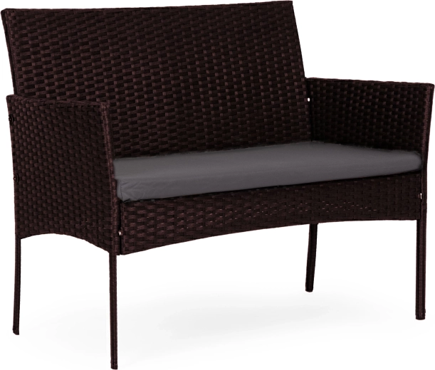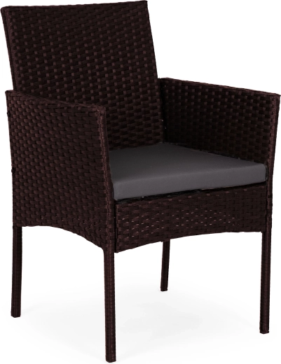 Syntetisk rattan i mørkebrun nuance er modstandsdygtig over for sol, fugt og temperatursvingninger. Den er nem at rengøre og bevarer sit elegante udseende i længden.