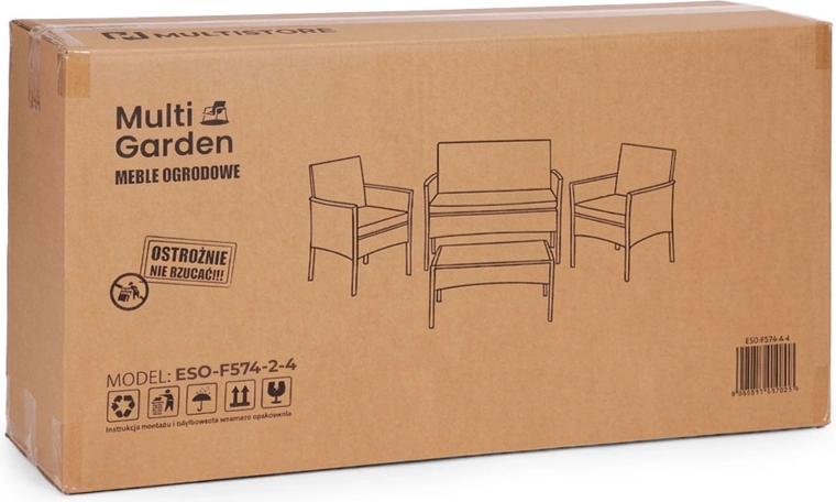 - Sæt til 4 personer: bænk til 2 + 2 lænestole + sofabord