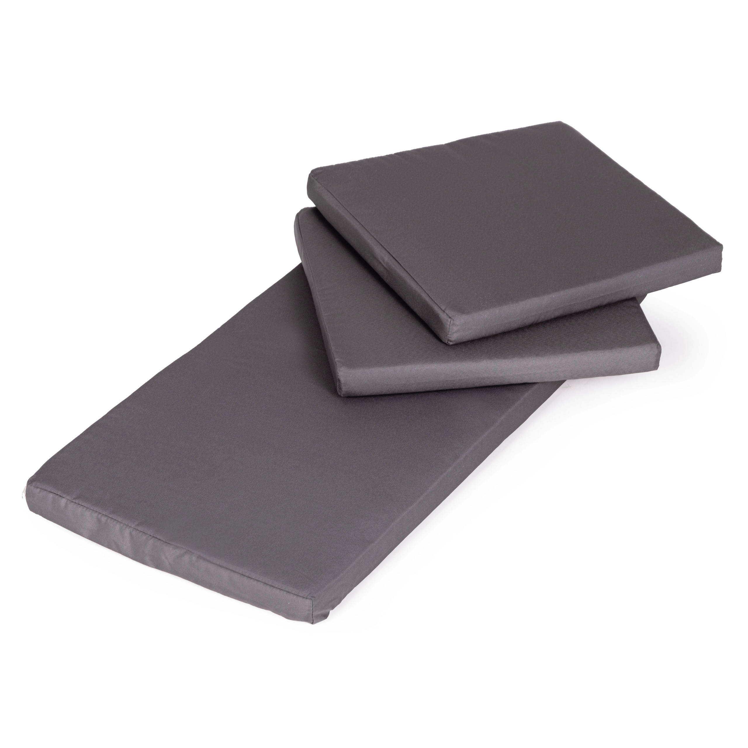 Sættet inkluderer behagelige sædehynder i polyester med en vægt på 160 g/m², som er bedre egnet til udendørs brug og holder formen. Vedligeholdelsen er enkel – snavs tørres blot af med en fugtig klud. Takket være skridsikre fodpropper er sættet stabilt på forskellige overflader og beskytter samtidig gulvet.