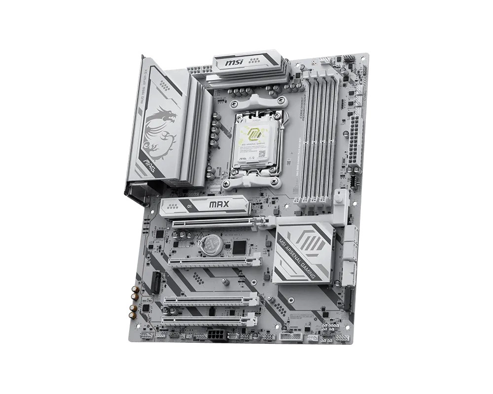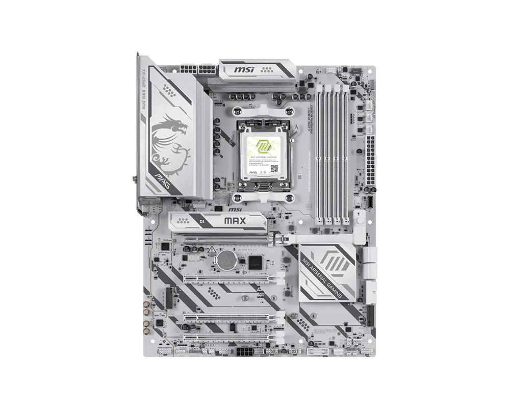 MSI MAG B850 Gaming Plus Max WiFi er et kraftfuldt gamer-bundkort med AM5-sokkel, der tilbyder Wi‑Fi 7, 5G LAN, PCIe 5.0, hurtig USB 10 Gb/s og understøttelse af DDR5. Takket være robust strømforsyning, avanceret køling med Frozr Guard og smarte EZ DIY-funktioner leverer det stabilitet, høj ydeevne og nem montering – selv til krævende builds med AMD RYZEN 9000/8000/7000-processorer.