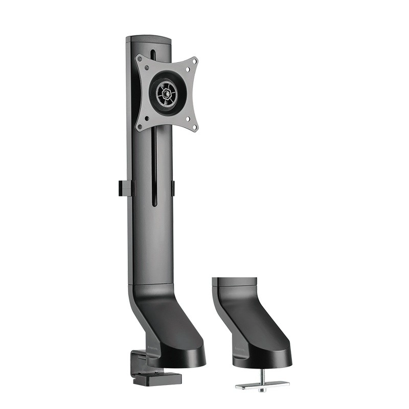 Den robuste klemme sidder solidt på bordkanten og sparer plads. Højden justeres nemt langs søjlen.