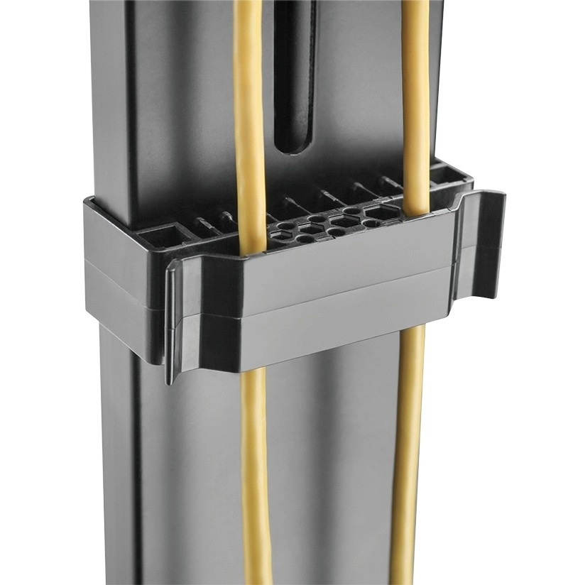 Den stabile klemmefastgørelse til bordpladen sparer plads og giver solid støtte. Kabelclips leder ledningerne langs konstruktionen, så alt er pænt organiseret uden kabelrod.