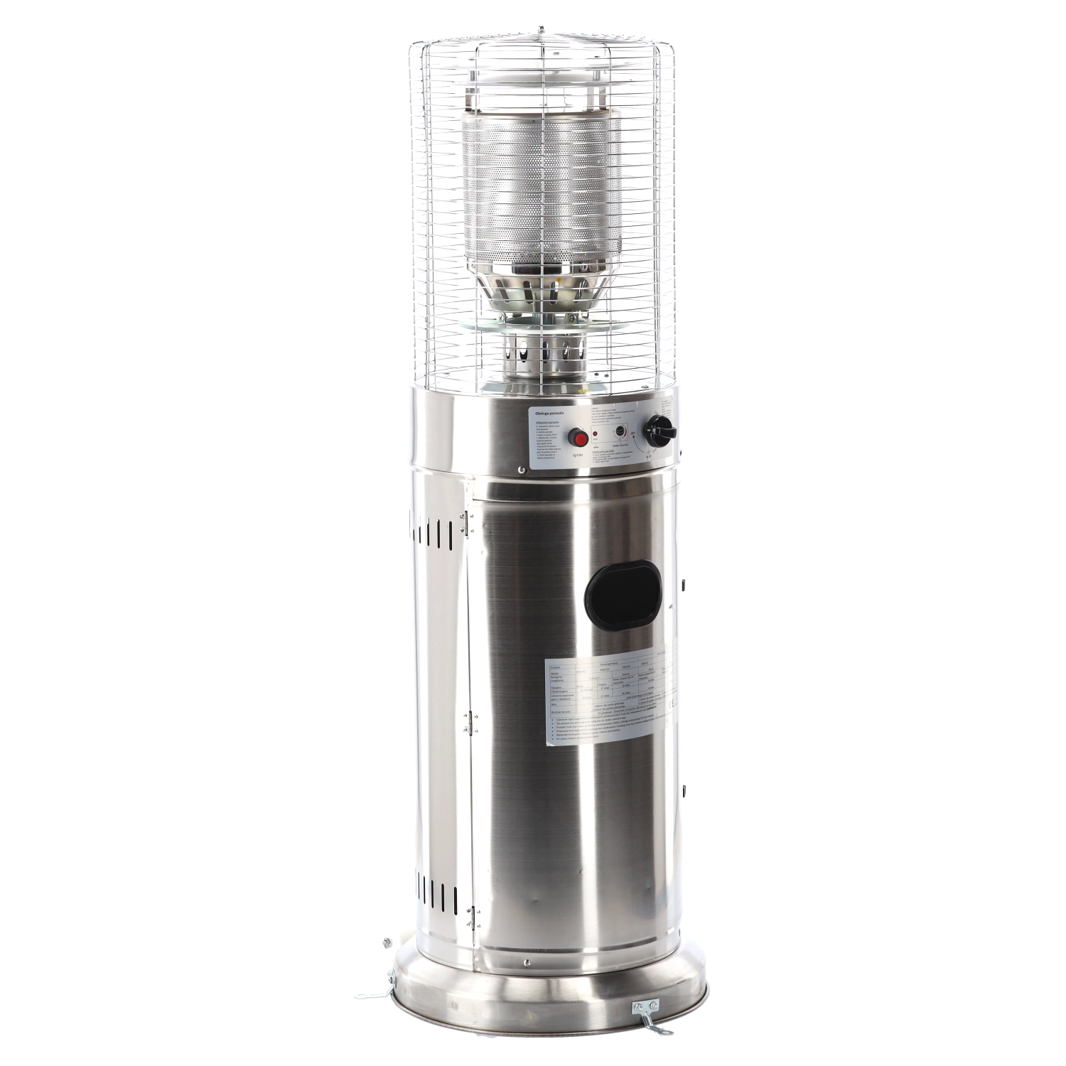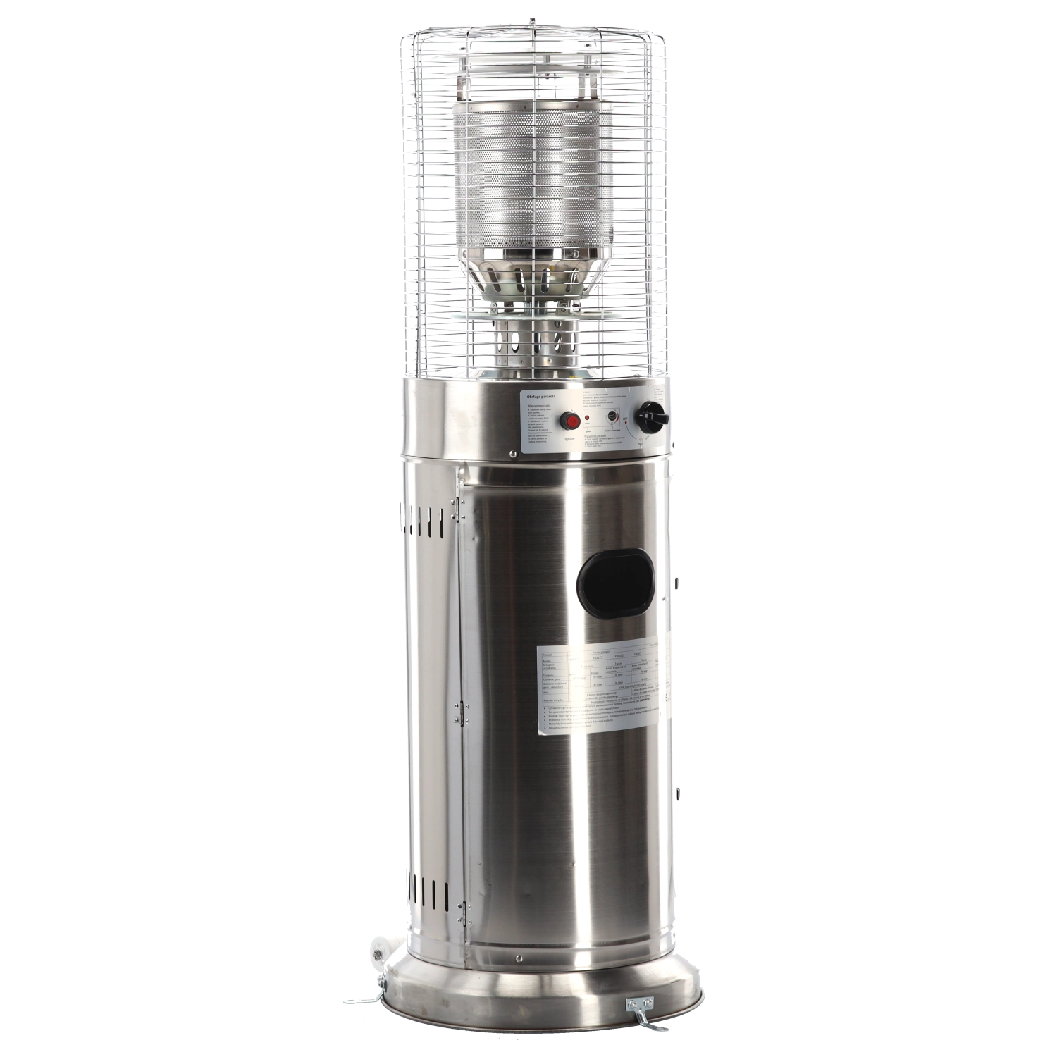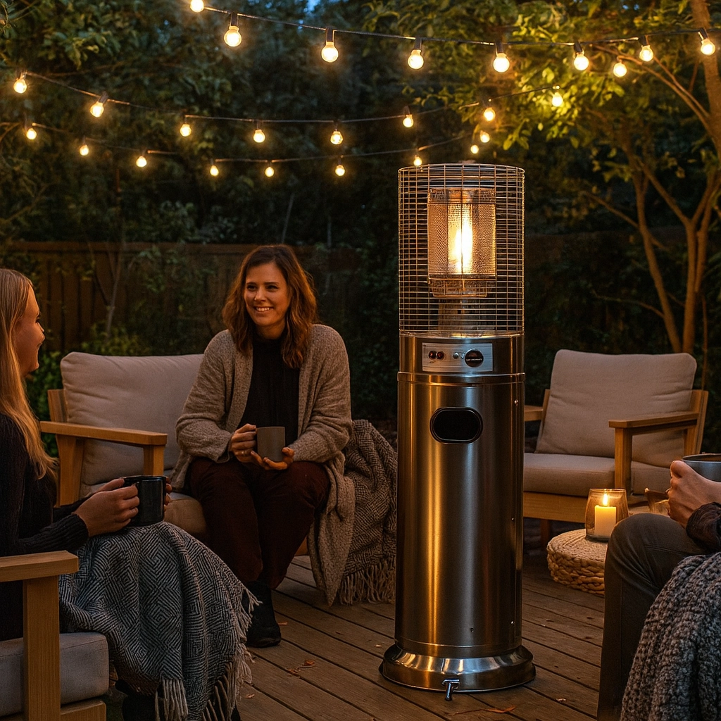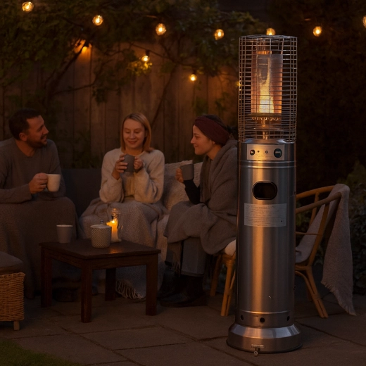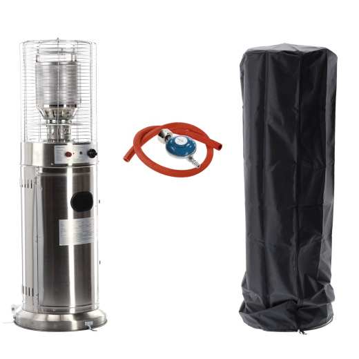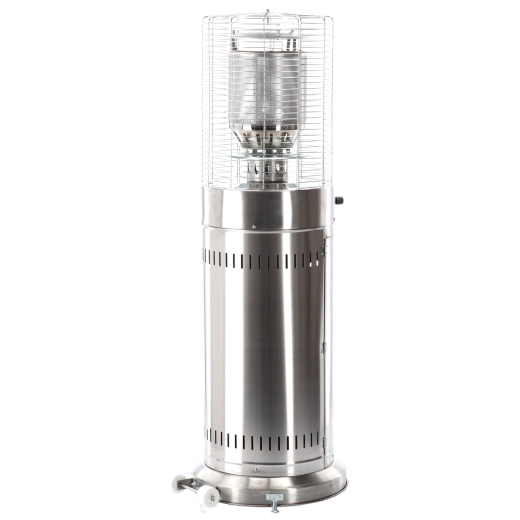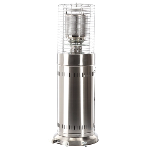 Denne mindre, men kraftige udendørs varmer leverer behagelig strålevarme til kompakte udendørsområder. Rustfrit stål sikrer lang levetid og vejrobstandighed, beskyttelsesgitret omkring brænderen øger sikkerheden, og det moderne cylindriske kabinet passer ind i enhver terrasse- eller patio-stil.