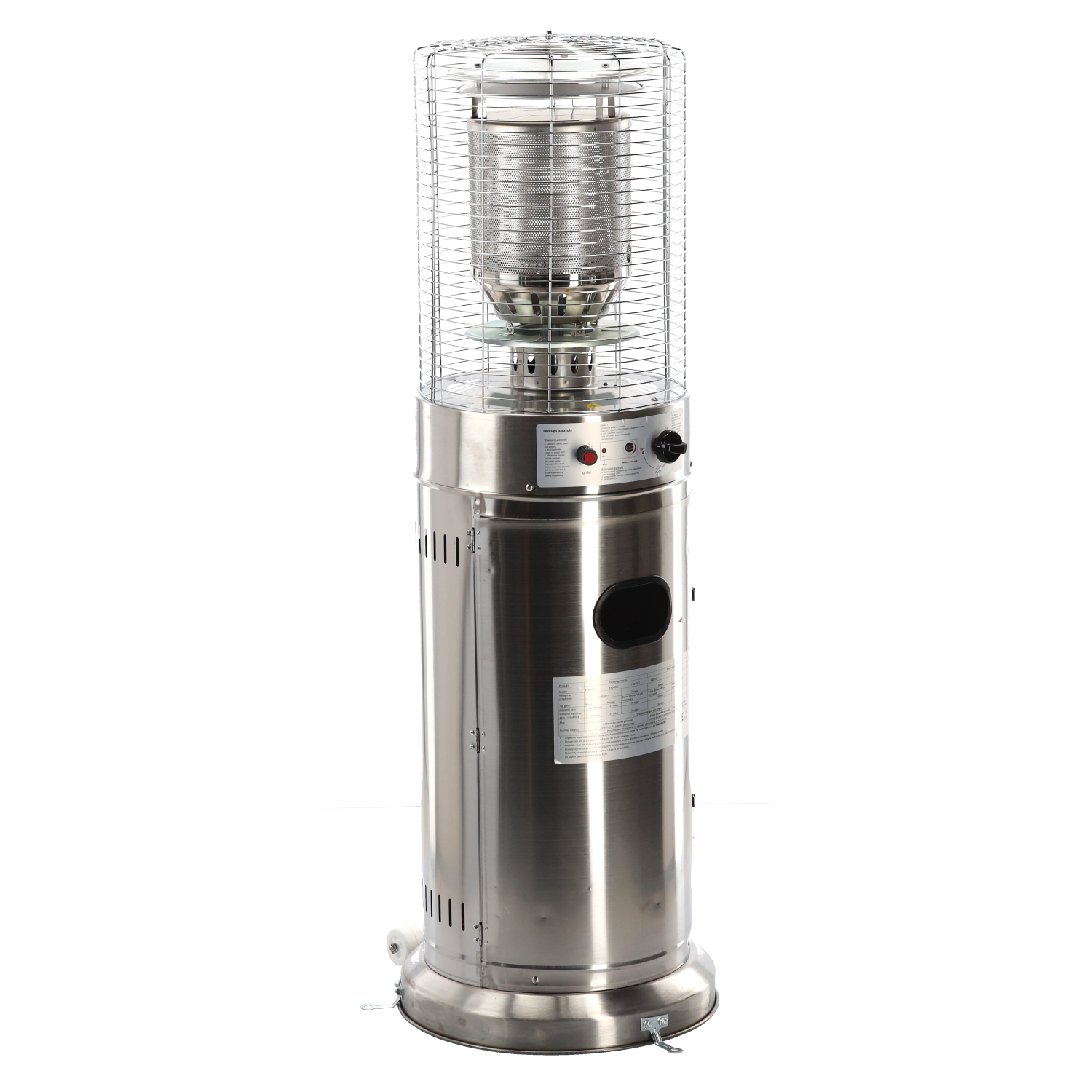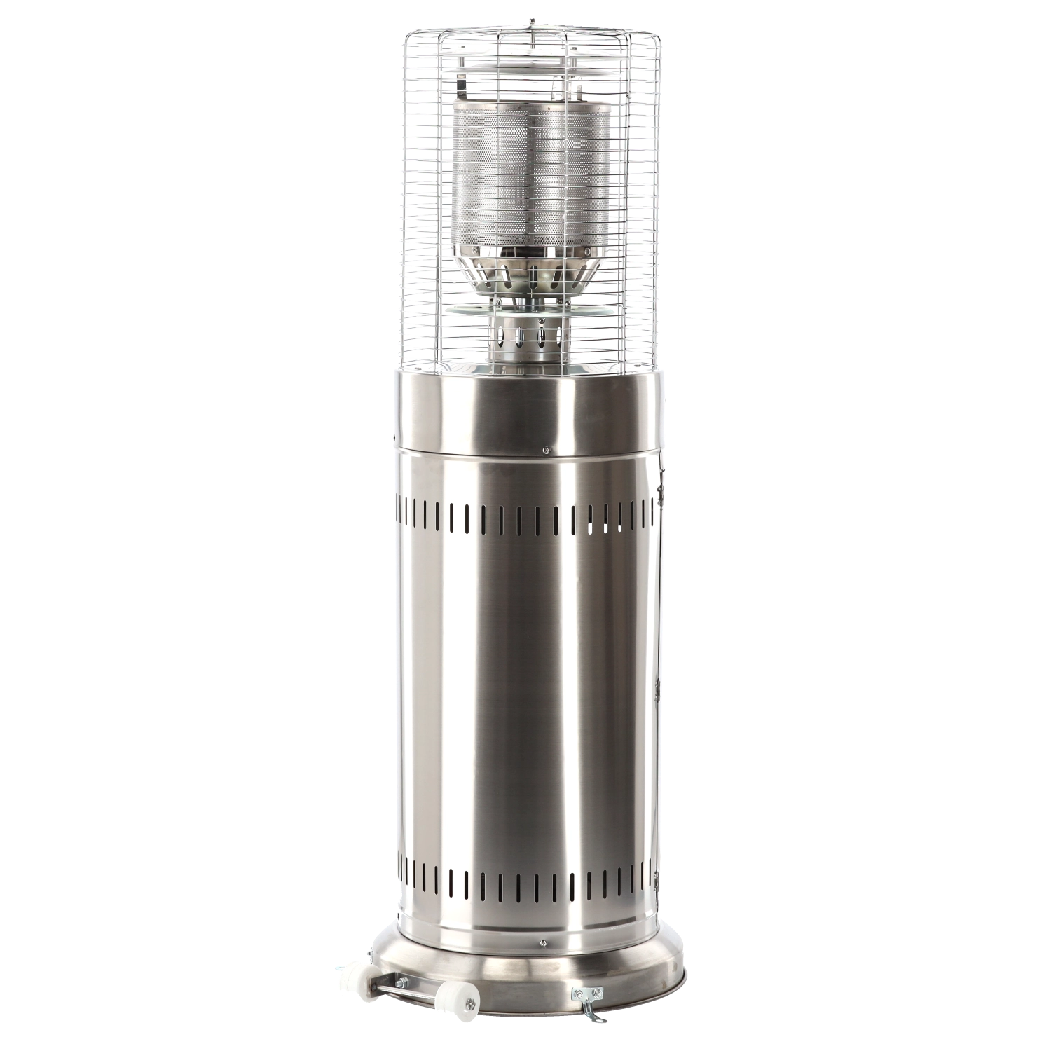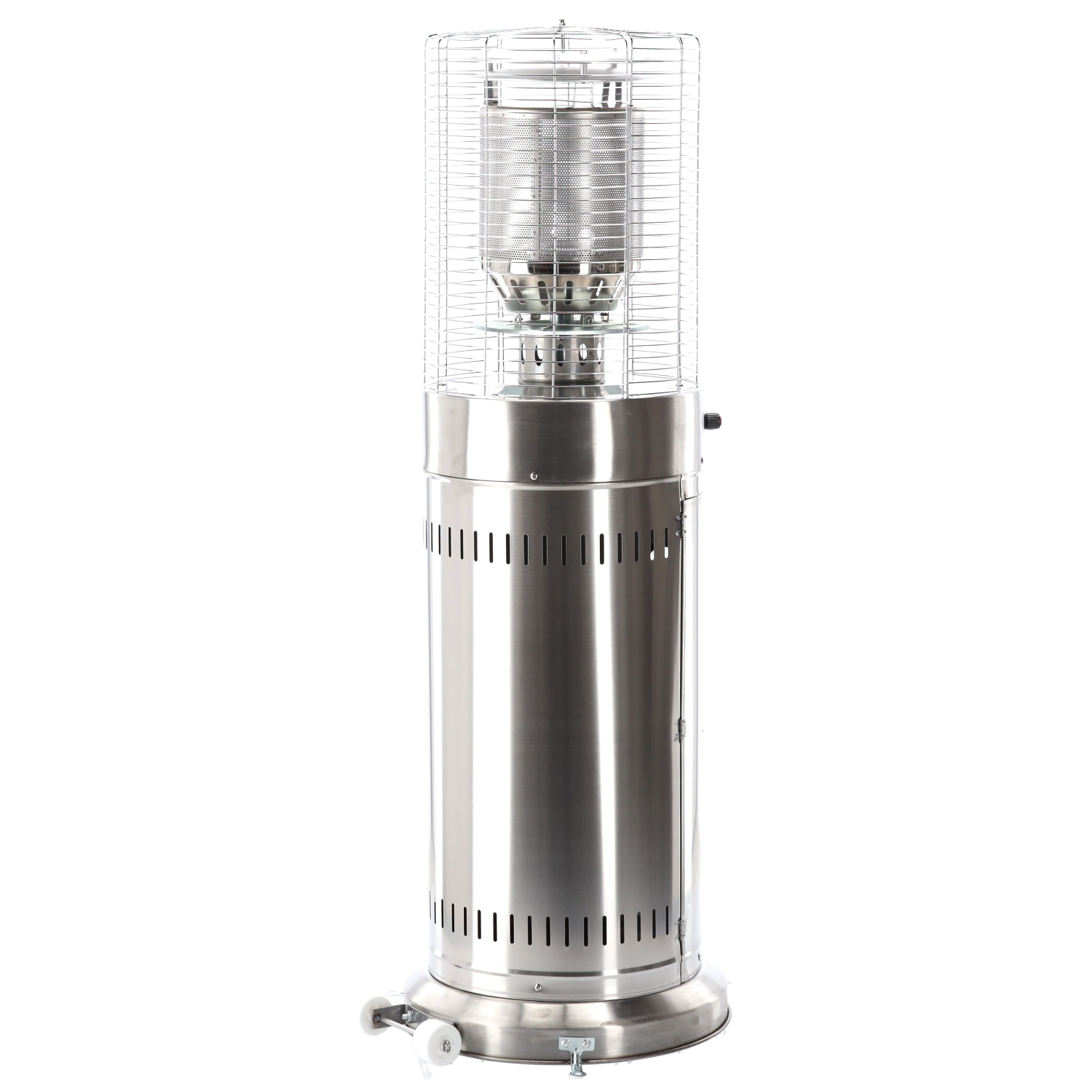 Denne mindre, men kraftige udendørs varmer leverer behagelig strålevarme til kompakte udendørsområder. Rustfrit stål sikrer lang levetid og vejrobstandighed, beskyttelsesgitret omkring brænderen øger sikkerheden, og det moderne cylindriske kabinet passer ind i enhver terrasse- eller patio-stil.