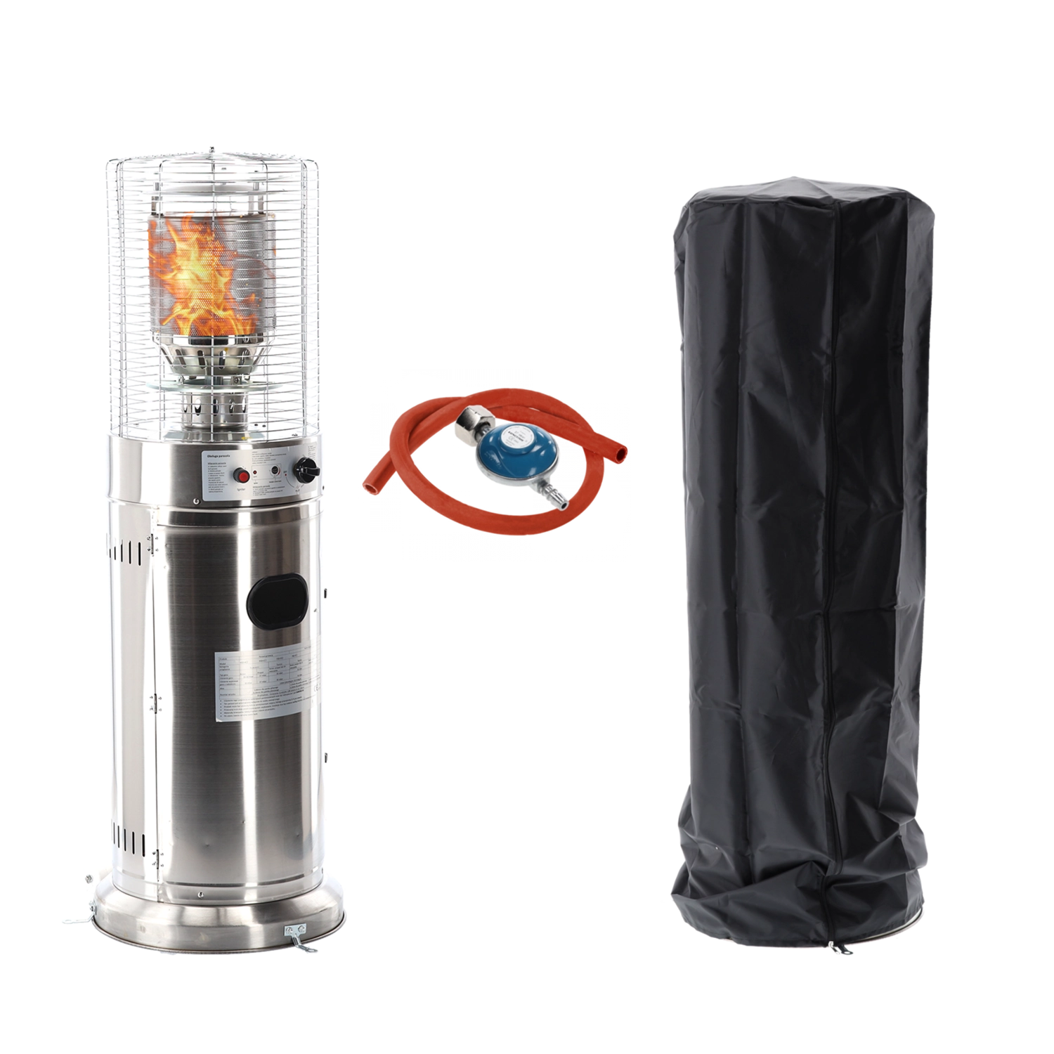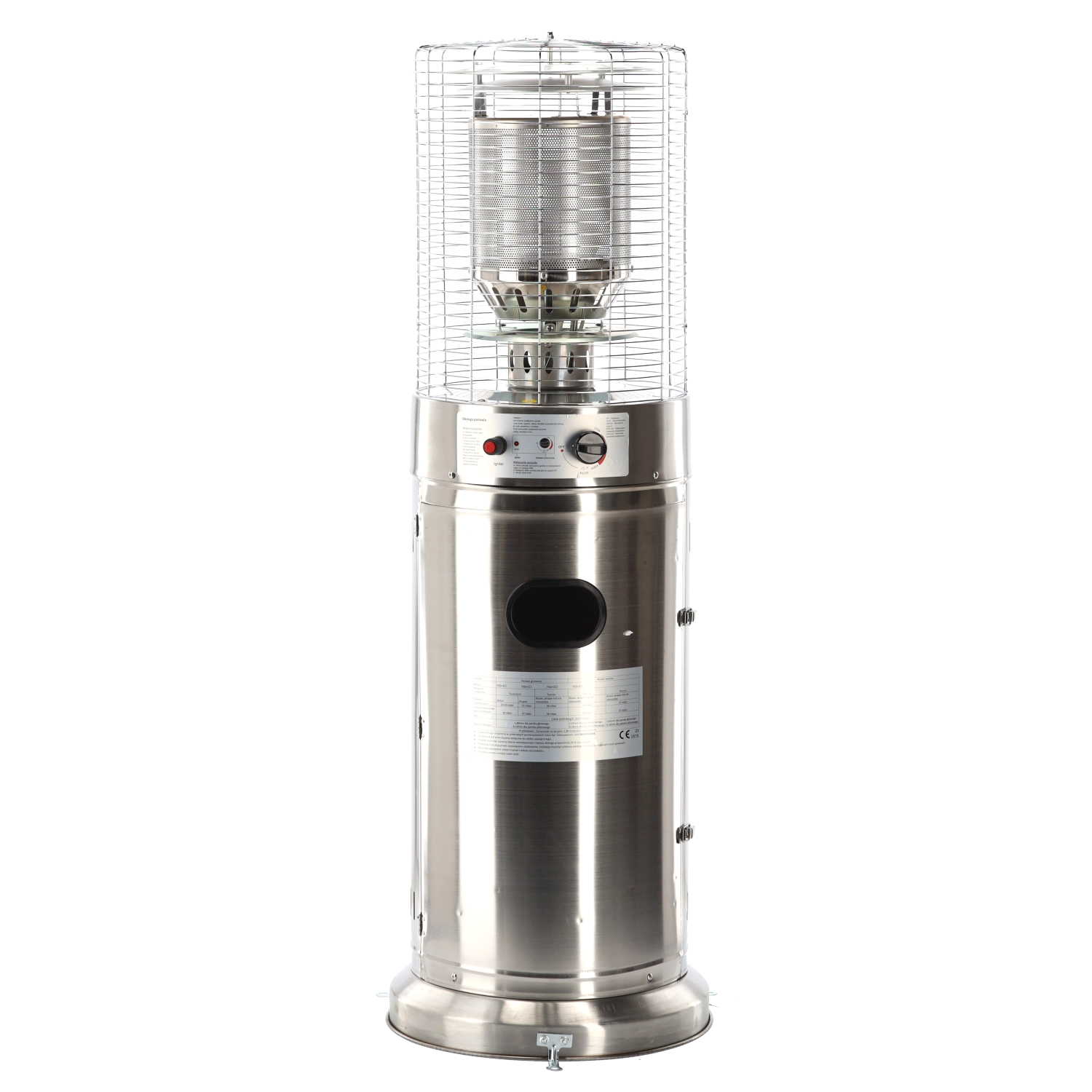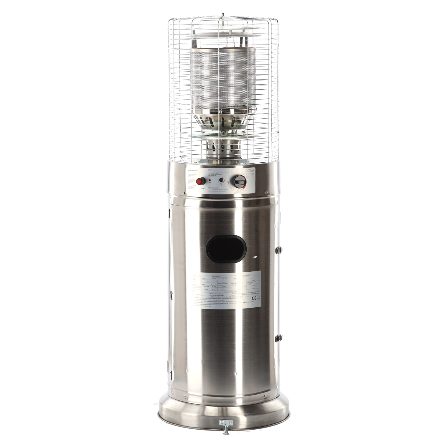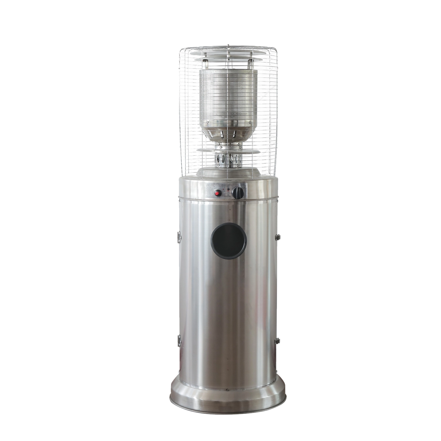 Denne mindre, men kraftige udendørs varmer leverer behagelig strålevarme til kompakte udendørsområder. Rustfrit stål sikrer lang levetid og vejrobstandighed, beskyttelsesgitret omkring brænderen øger sikkerheden, og det moderne cylindriske kabinet passer ind i enhver terrasse- eller patio-stil.