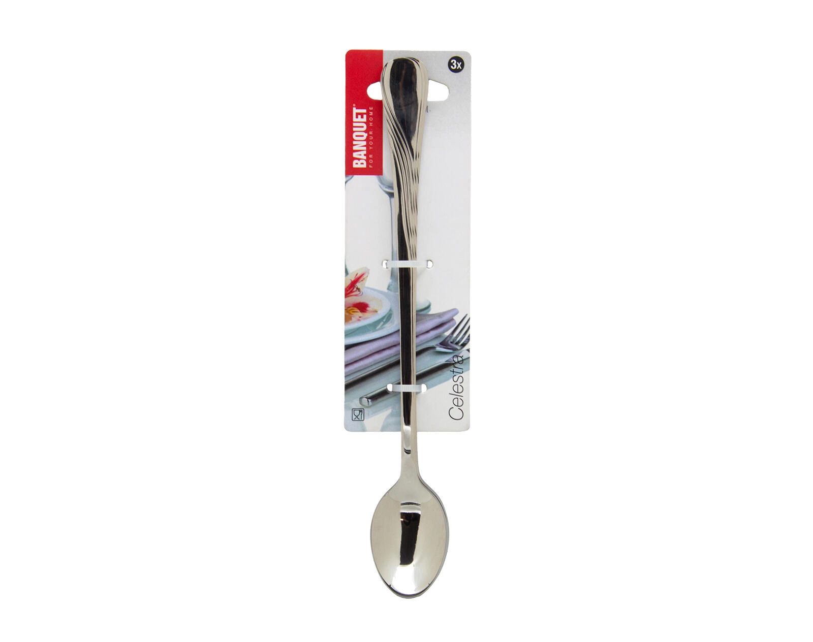 Elegante latte-skeer fra serien CELESTRA er fremstillet af kvalitetsrustfrit stål med en blank overflade og præcis manuel polering. Takket være den lange længde på 20,8 cm passer de perfekt til høje glas og sikrer nem omrøring af dine yndlingskaffedrikke.