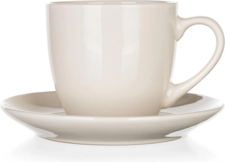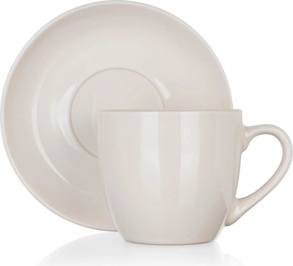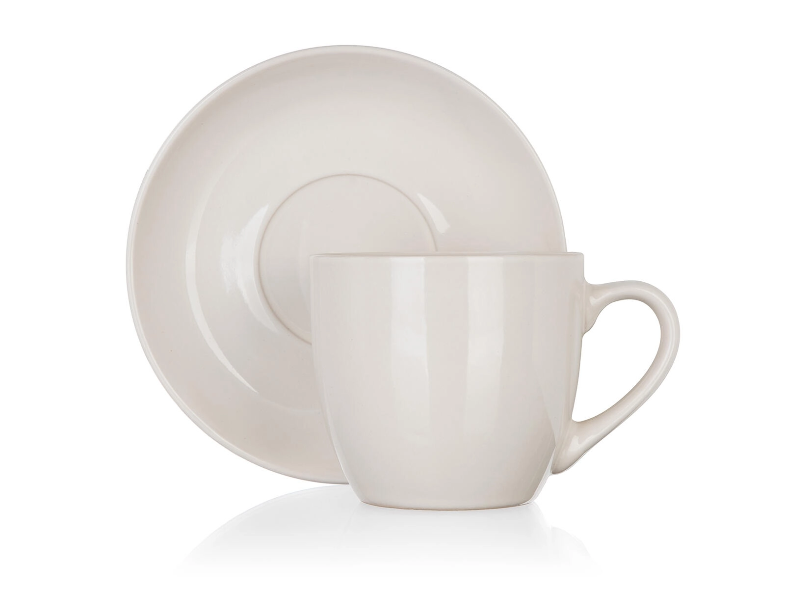 Oplev tidløs elegance med kollektionen Natural Ivory. Denne kop med en kapacitet på 250 ml og matchende underkop (Ø 15 cm) er fremstillet af kvalitetskeramik fra EU med blank glasur for nem vedligeholdelse og lang levetid. Den blide elfenbensfarve fremhæver serveringen af kaffe, te og varm chokolade.