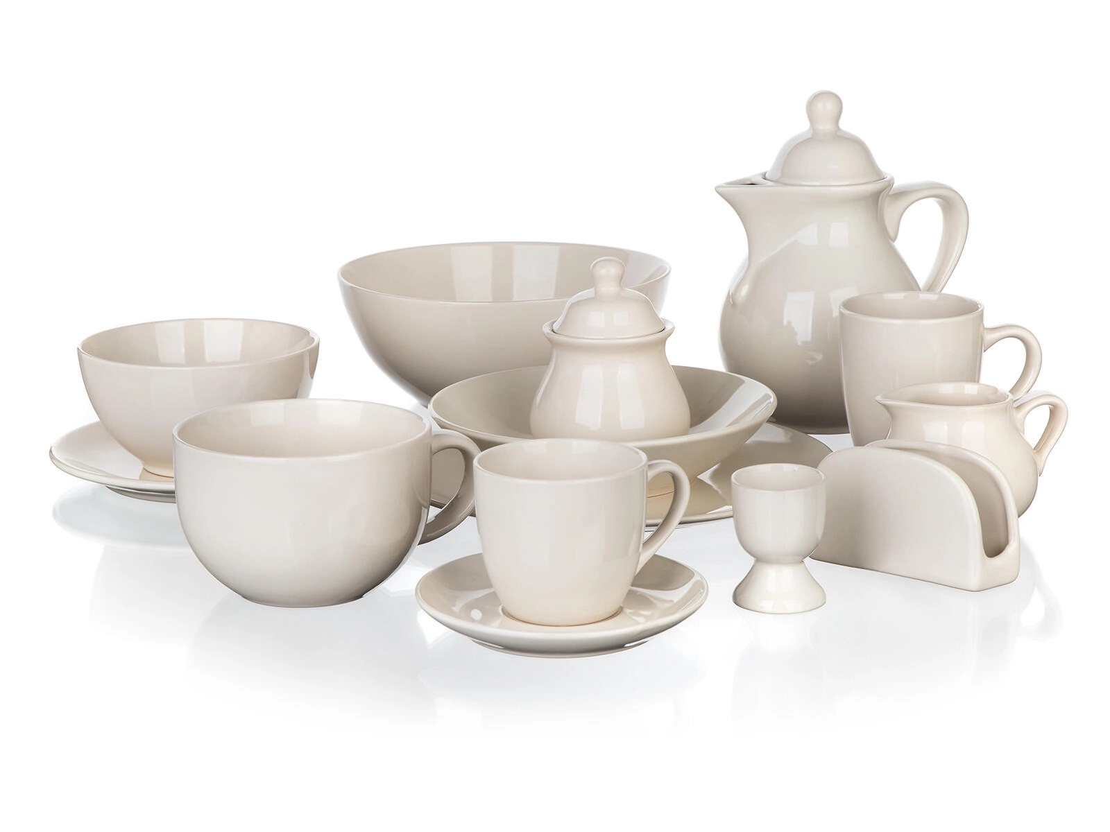 Keramik med blank glasur er egnet til mikrobølgeovn og opvaskemaskine – hverdagsservice uden besvær.