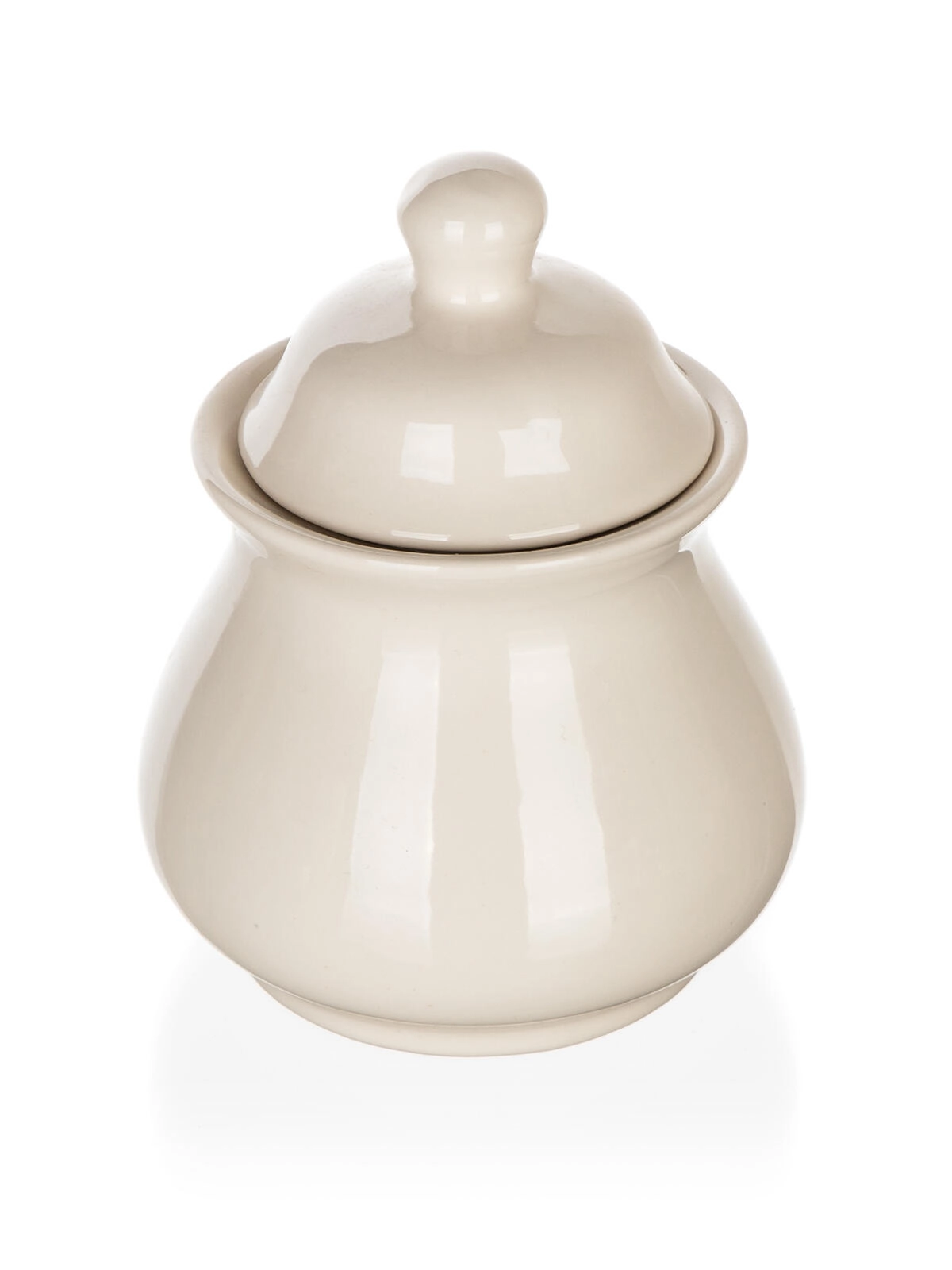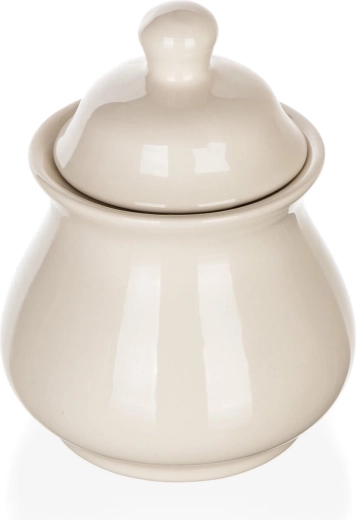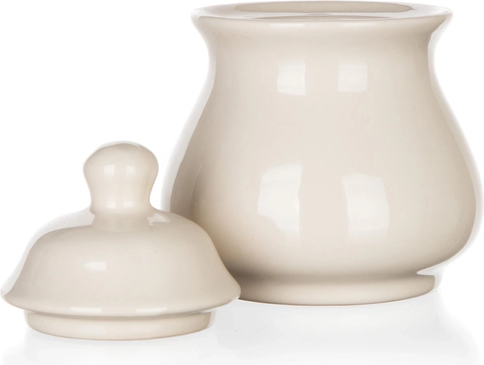 Elegant sukkerskål med en kapacitet på 280 ml i elfenbensfarve, fremstillet af kvalitetskeramik i EU. Takket være glasuren er den nem at rengøre, egnet til opvaskemaskine og mikrobølgeovn og passer perfekt ind i ethvert moderne køkken. NATURAL-kollektionen muliggør stilfuld farvekombination og en ensartet borddækning.