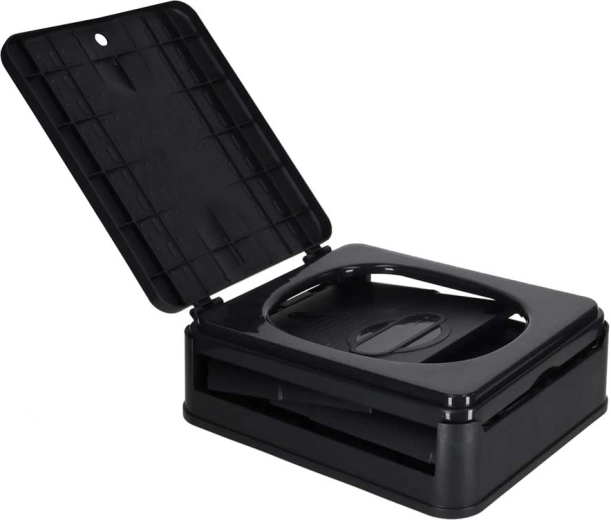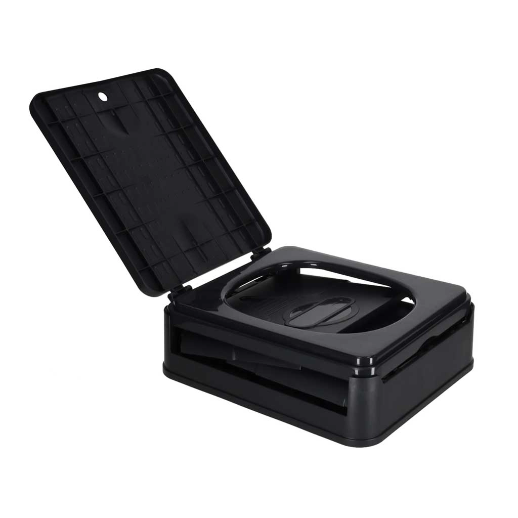 Nyd friheden på farten med et praktisk toilet, der foldes ud på et øjeblik og efter brug nemt klappes sammen til en kompakt form. Den robuste plastkonstruktion af PP er holdbar, nem at rengøre og sikrer i kombination med engangsposer maksimal renlighed uden kontakt med urenheder.