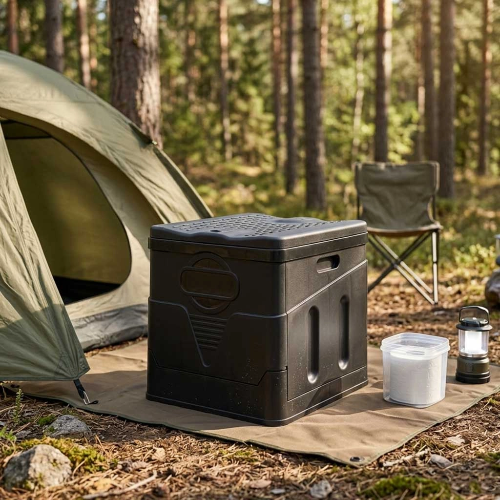 Kompakt og stabilt sammenklappeligt bærbart toilet til camping, have og rejser giver komfort og hygiejne overalt. Takket være 20 l volumen, let PP-konstruktion og brug af engangsposer er vedligeholdelsen nem og kontaktfri. Sidehåndtag og solidt låg gør det lettere at bære og at sidde, og en maksimal belastning på 115 kg sikrer tryghed selv på ujævnt underlag.