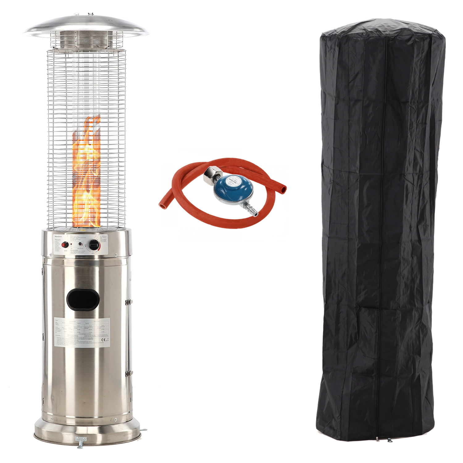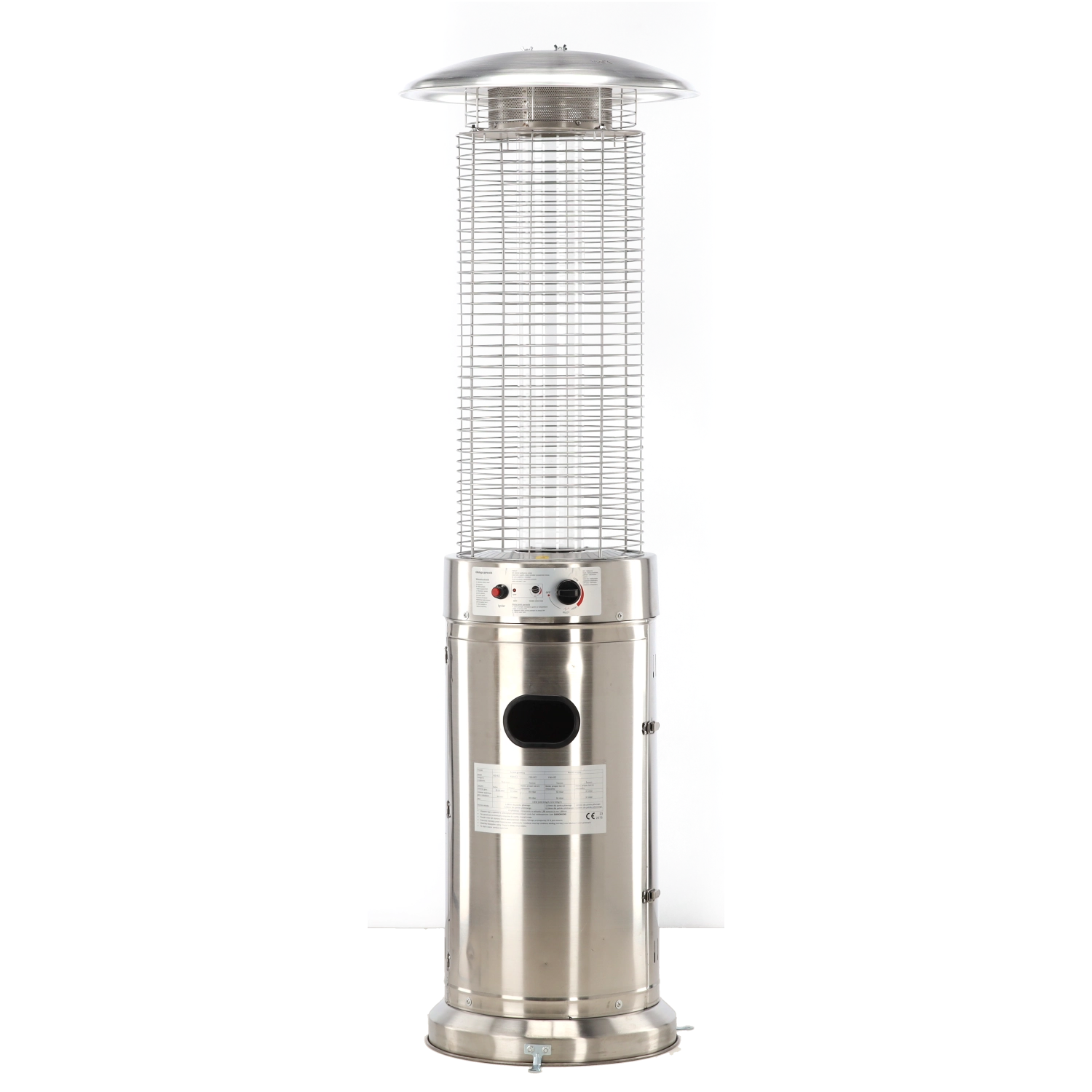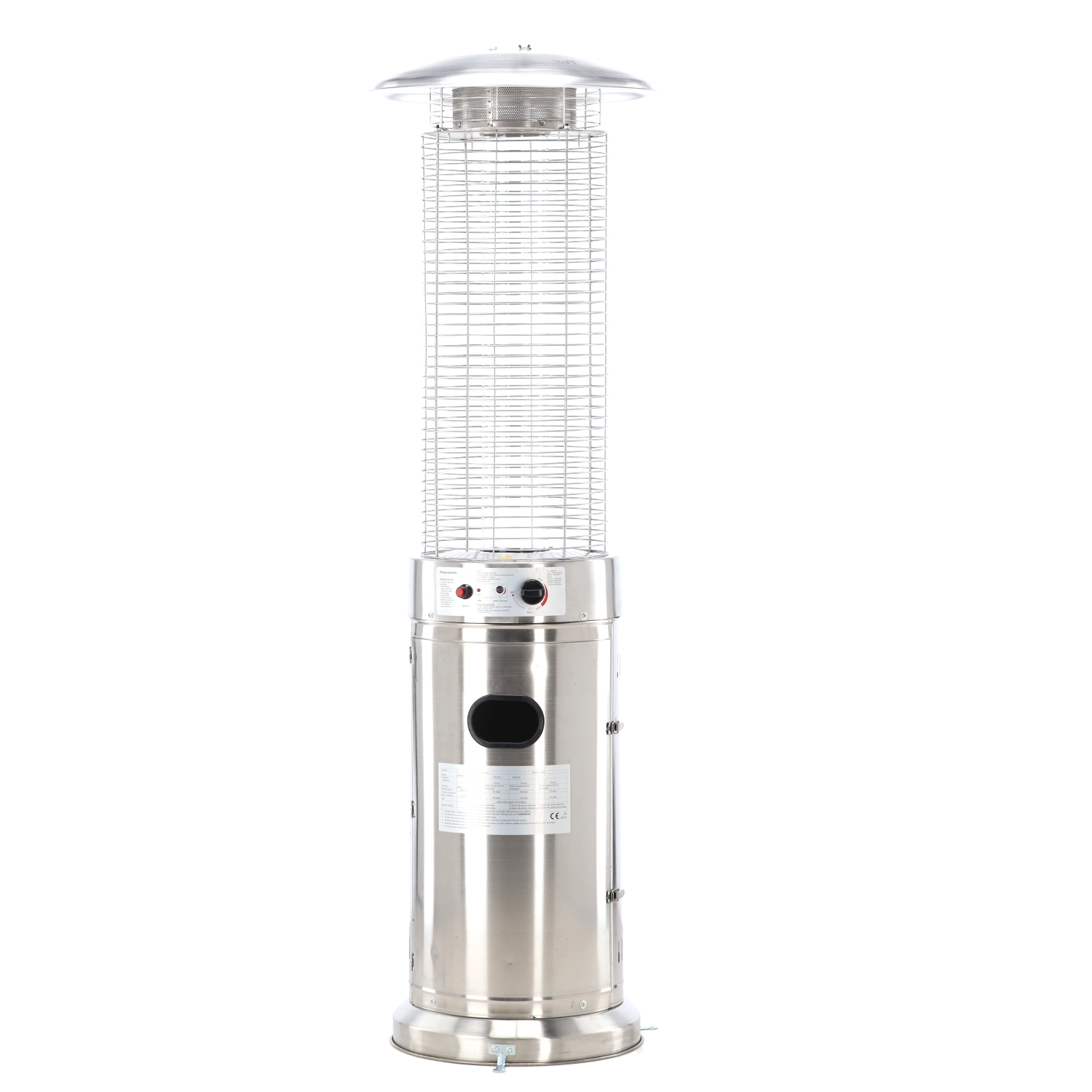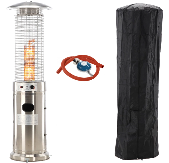 Kabinettet i rustfrit stål modstår vejret og er let at vedligeholde. Den brede reflektor leder varmen præcist derhen, hvor du ønsker den.