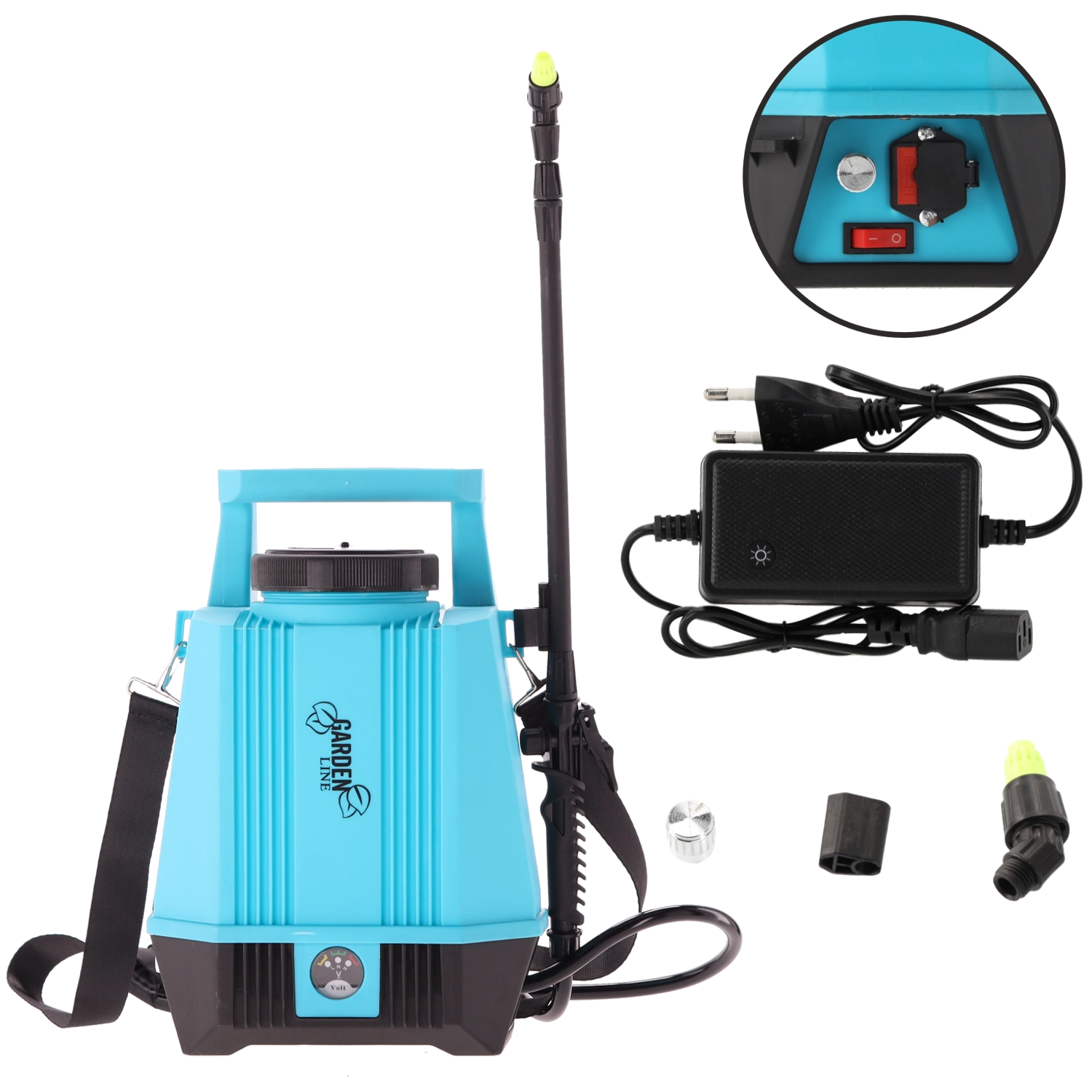 Den batteridrevne havesprøjte er en pålidelig hjælper til plantebeskyttelse mod sygdomme og skadedyr, til gødskning og til rengøring af overflader. Den kraftige pumpe med et flow på 1,2 l/min og et arbejdsttryk på 0,1–0,3 MPa sikrer stabil og effektiv forstøvning. Takket være den teleskopiske/forlængbare lanse med regulering opnår du horisontalt 2–5 m og vertikalt 4–7 m.