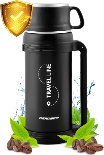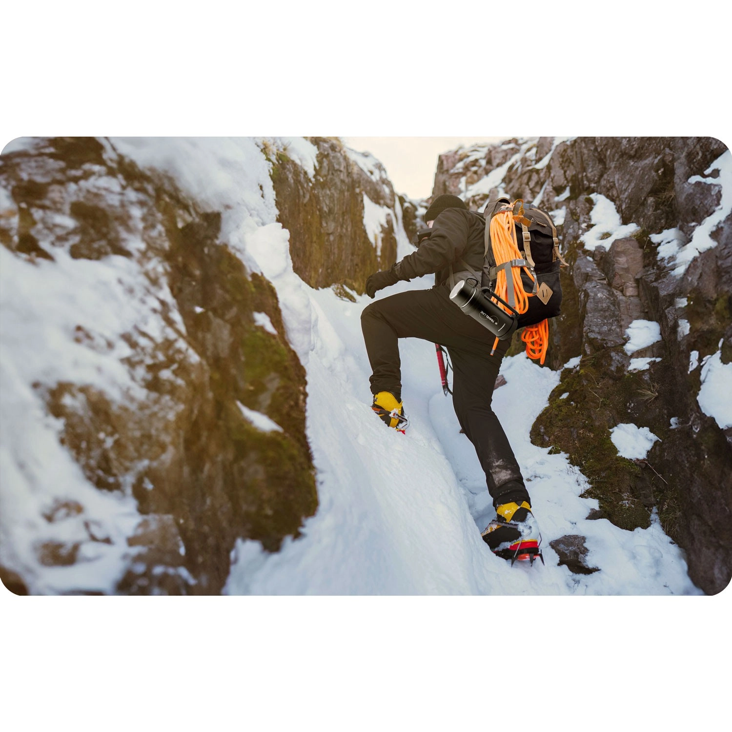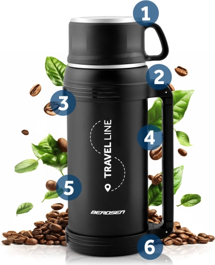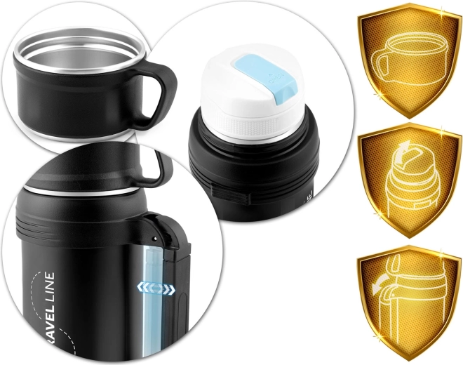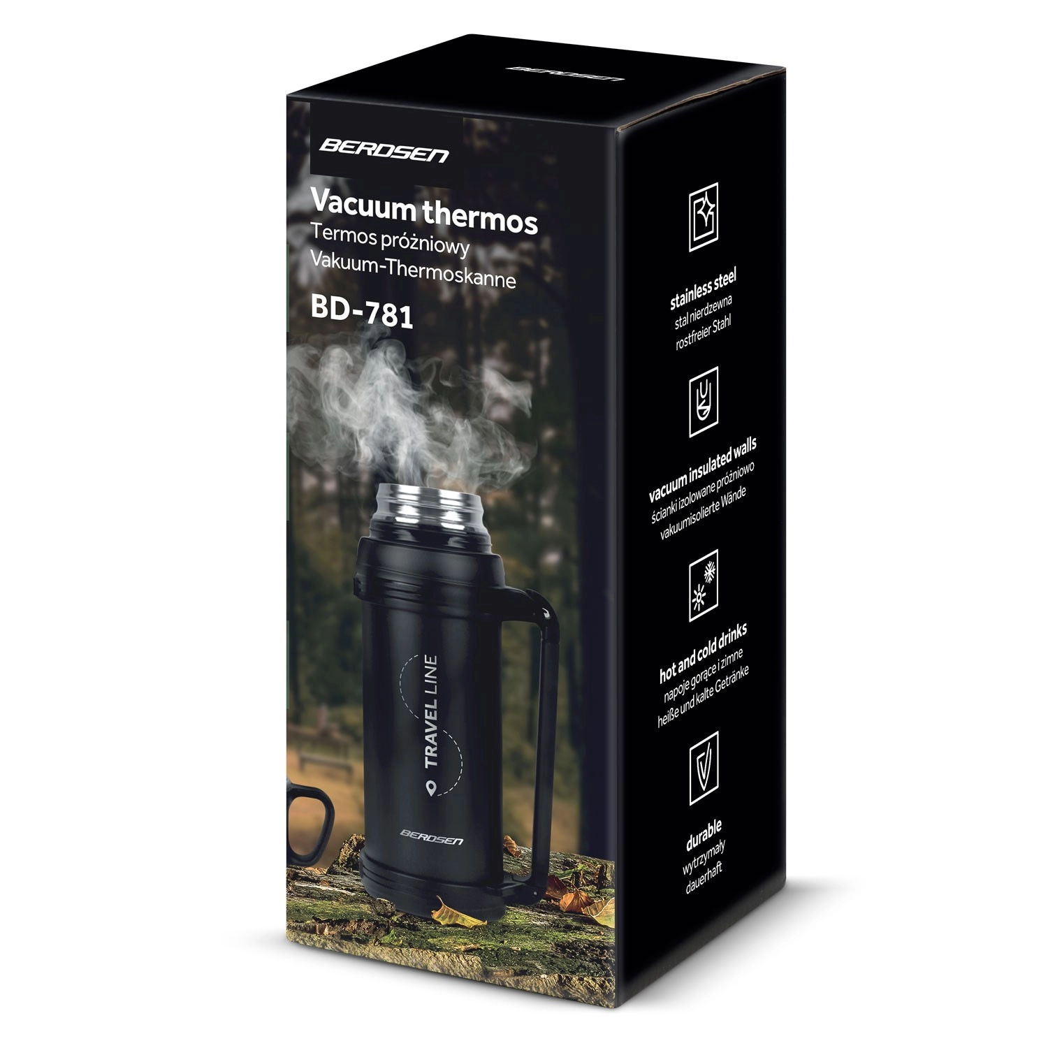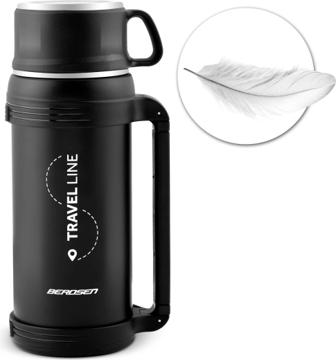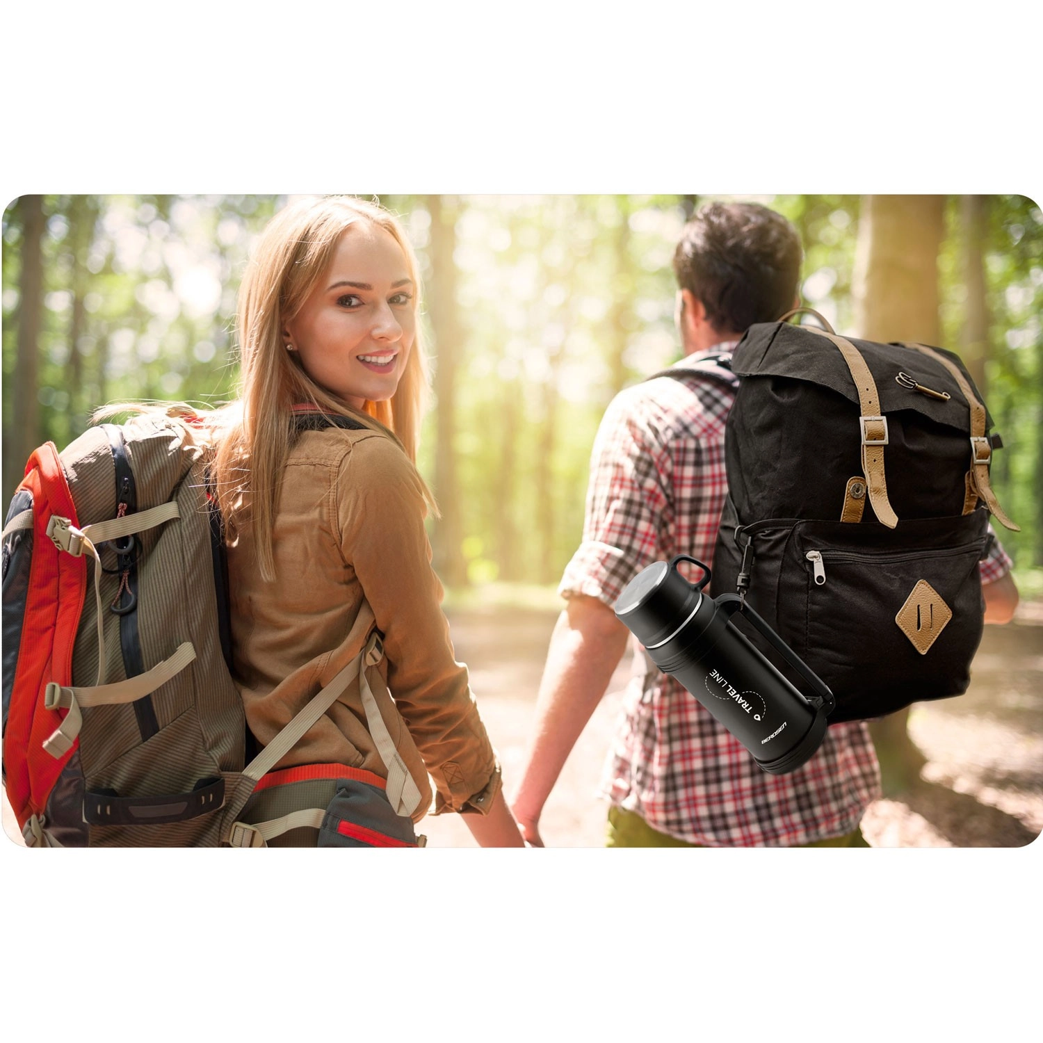 Den dobbeltvæggede konstruktion i rustfrit stål holder drikke varme i op til 12 timer og kolde i op til 24 timer – ideel til udflugter, arbejde og vintereventyr.