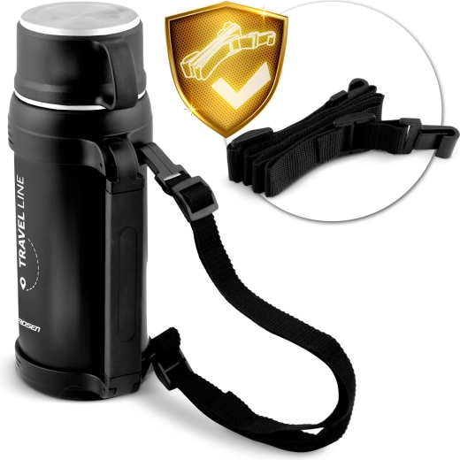 Praktisk rejsetermokande på 1,5 l holder drikke varme i op til 12 timer og kolde i op til 24 timer. Takket være dobbeltvægget rustfrit stål, let konstruktion og justerbart sidehåndtag er den ideel til udflugter og daglig pendling. Låget fungerer som en kop, og der er sikker låsning af låget samt en justerbar skulderrem med i pakken.