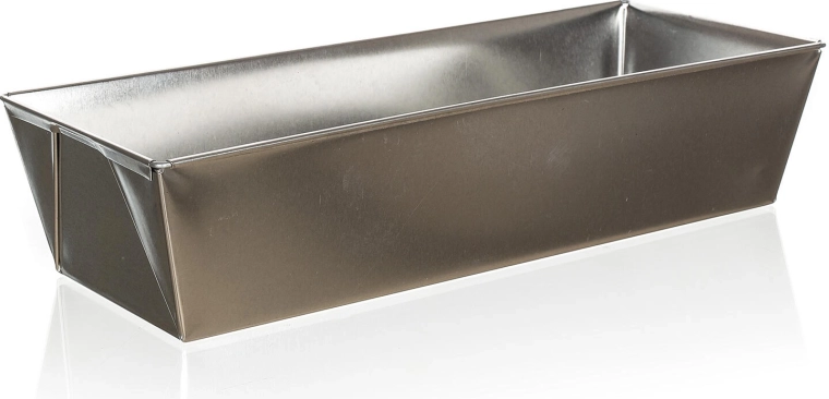 Praktisk sandkageform i målene 30 × 12 × 7 cm af robust fortinnet plade for jævn bagning. Velegnet til el-, gas- og varmluftsovn, tillader brug af metalredskaber og er perfekt til søde og salte opskrifter.