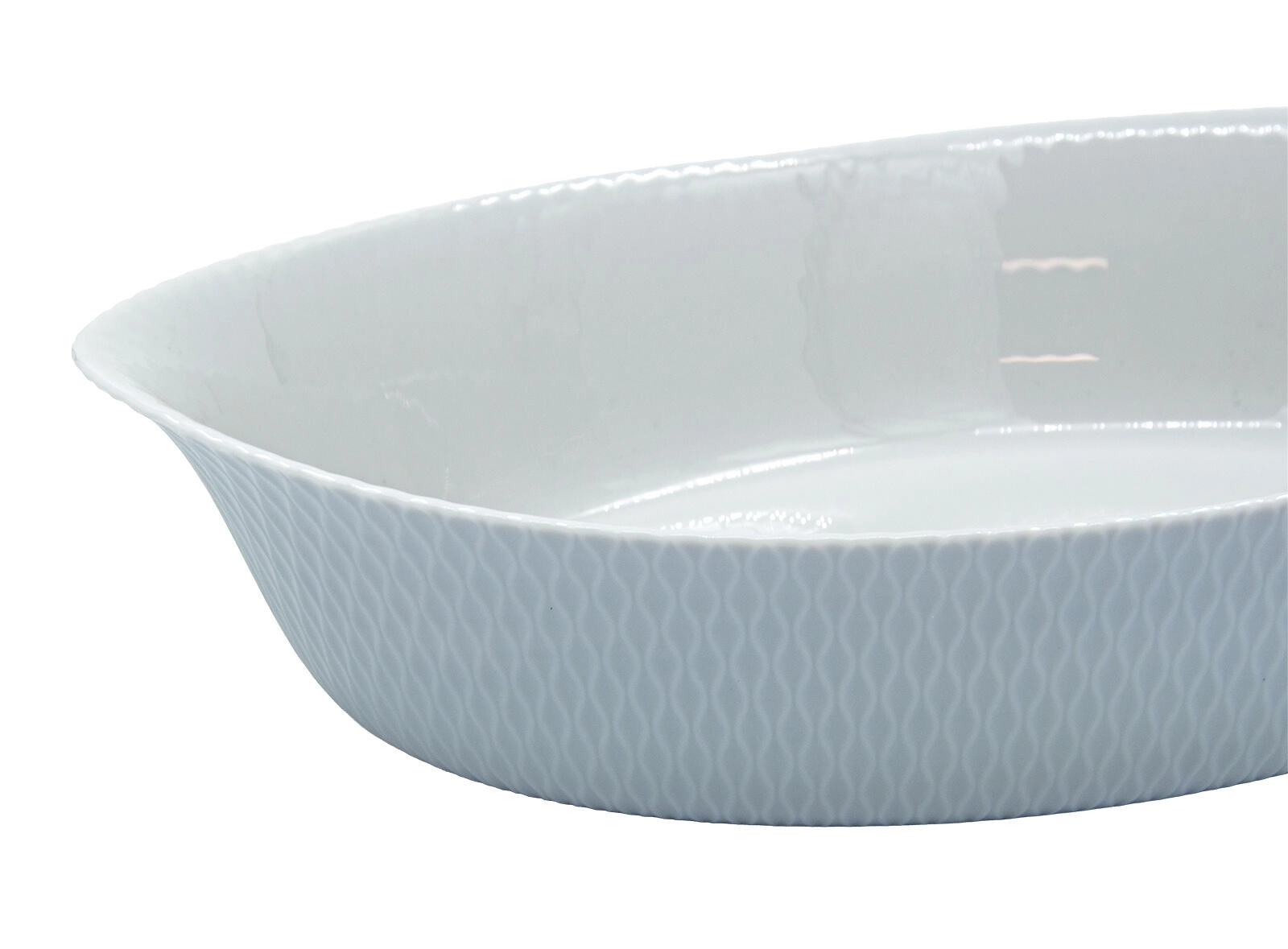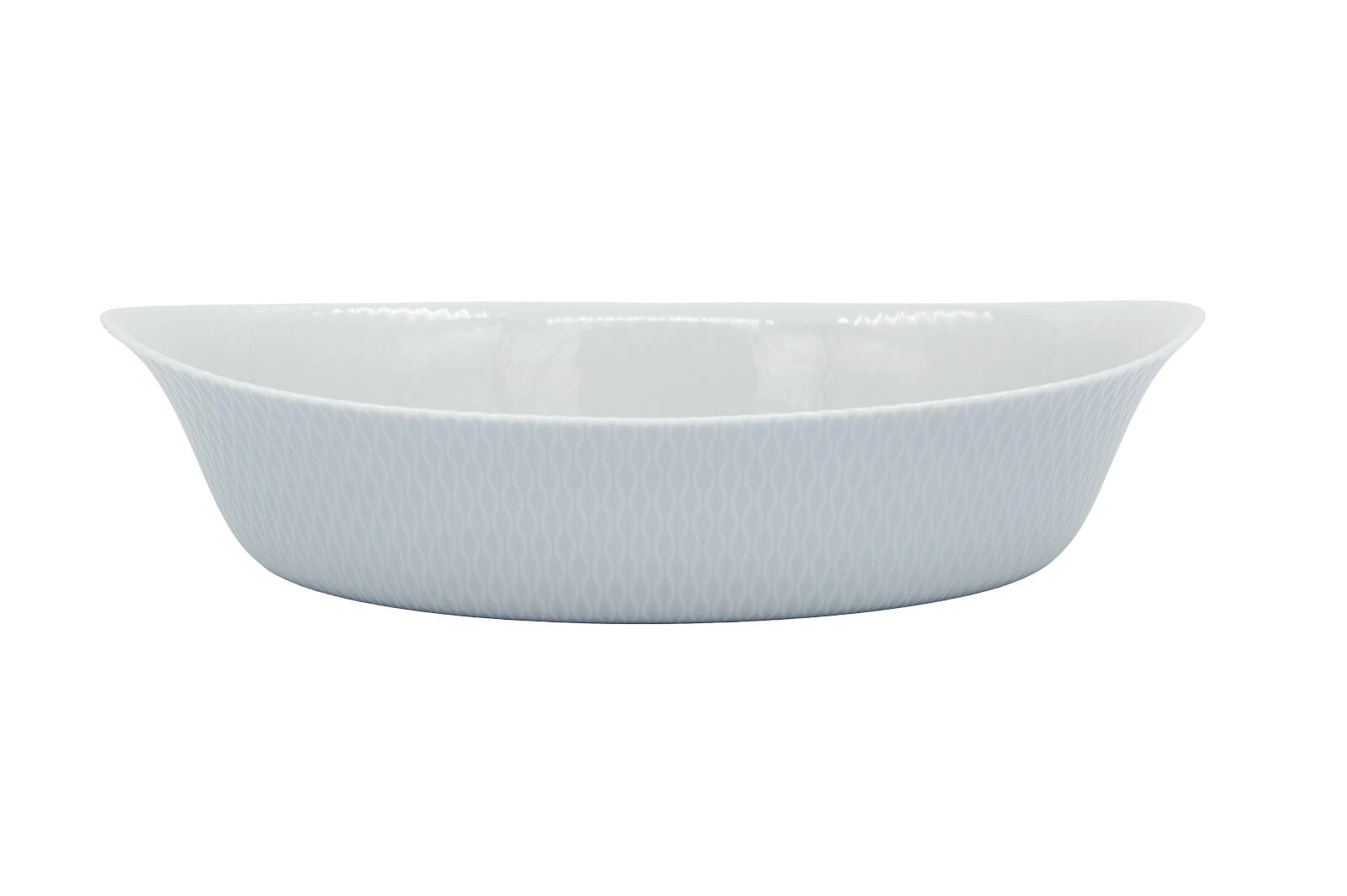 Dette ovale bagefad med målene 32 × 20 × 7,4 cm forener moderne design og praktiske egenskaber. Den udvendige bølgede tekstur giver et sikkert greb, mens den glatte, blanke inderside gør rengøring og servering let. Den tidløse grå farve passer perfekt ind i ethvert køkken.