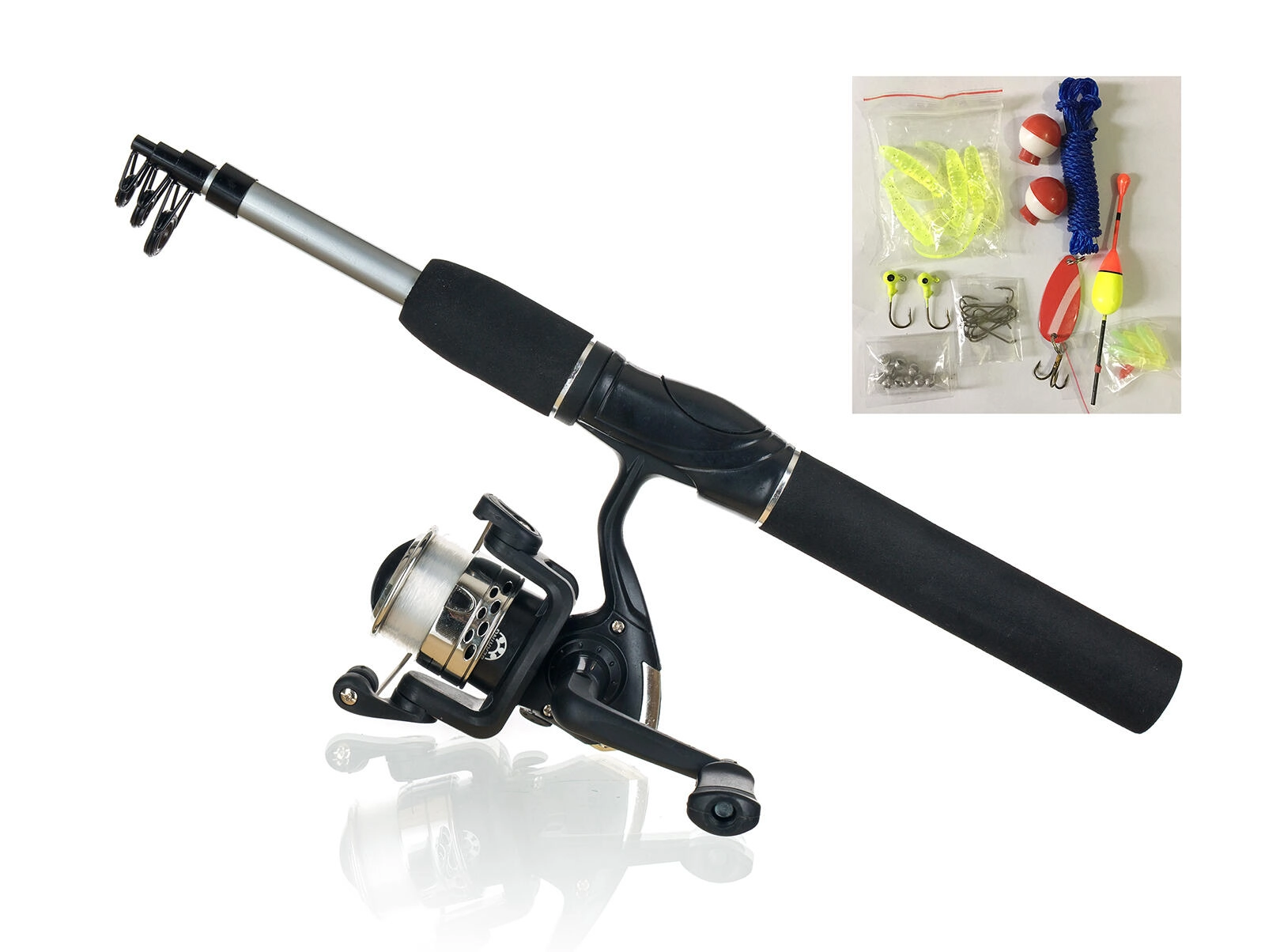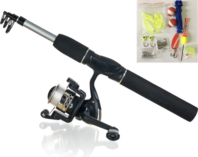 Stangen udmærker sig ved sin korte transportlængde, så den nemt passer i rygsæk eller bil. I pakken finder du også praktisk tilbehør – forskellige agn, kroge, flåd og lodder – så du kan tage direkte til vandet og tilpasse dig de aktuelle forhold.