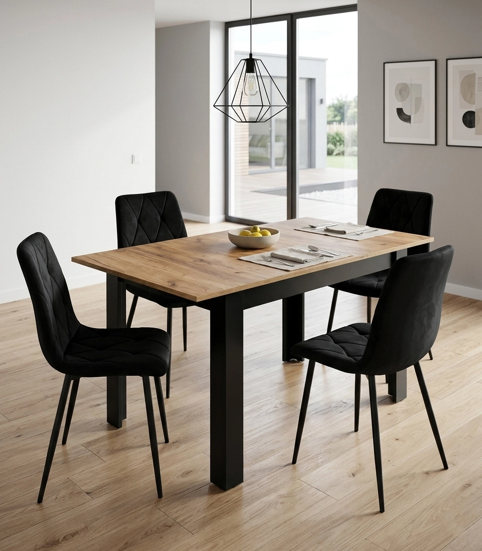 Massive sorte ben giver bordet fremragende stabilitet og et moderne look, der passer til både loft- og klassiske interiører.