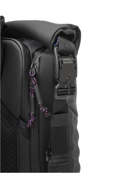Udvidelig roll-top med sideklemme, sidelommer med lynlås for hurtig adgang samt polstrede seler med brystrem for komfort hele dagen.