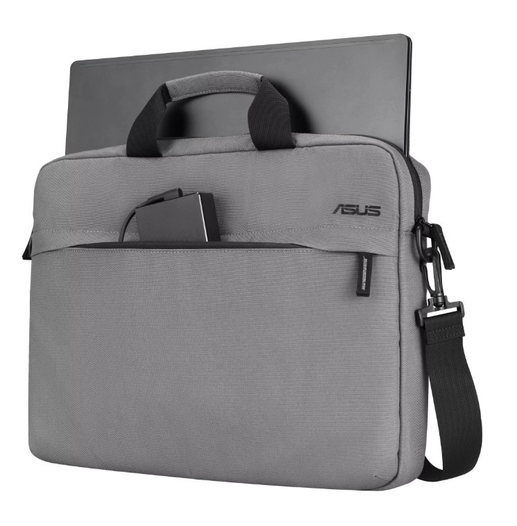 Den elegante ASUS AC1600-taske er den ideelle ledsager på rejser og til arbejde. Den rummelige hovedsektion rummer sikkert en bærbar op til 16″ og giver samtidig plads til oplader, mus og andet tilbehør. Polstrede håndtag og aftagelig rem sikrer komfort i hverdagen.