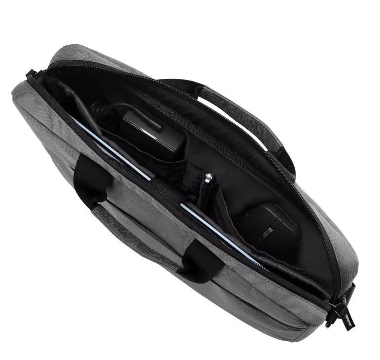 Indvendige lommer og rum holder telefon, powerbank, mus og skriveredskaber pænt på plads. Åbn lynlåsen, og du har alt ved hånden på et øjeblik.
