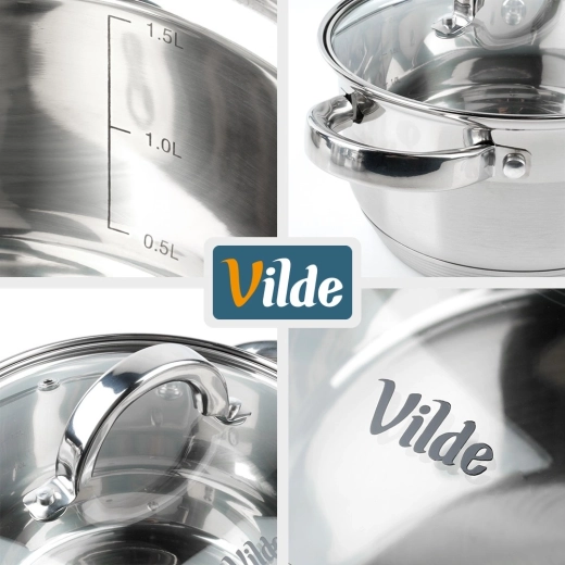 Ideel til supper, saucer, grøntsager og til opvarmning af retter. Det elegante udseende gør det muligt at servere direkte på bordet. Original Vilde – Inoxcellent Line, fremstillet efter europæiske standarder.