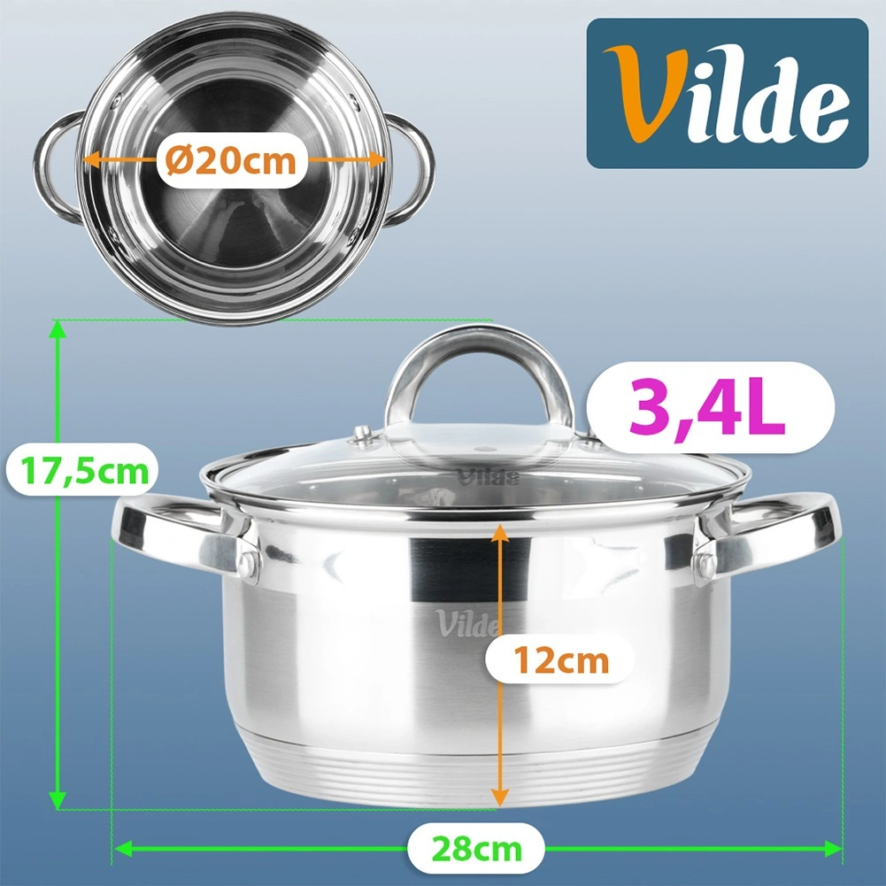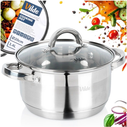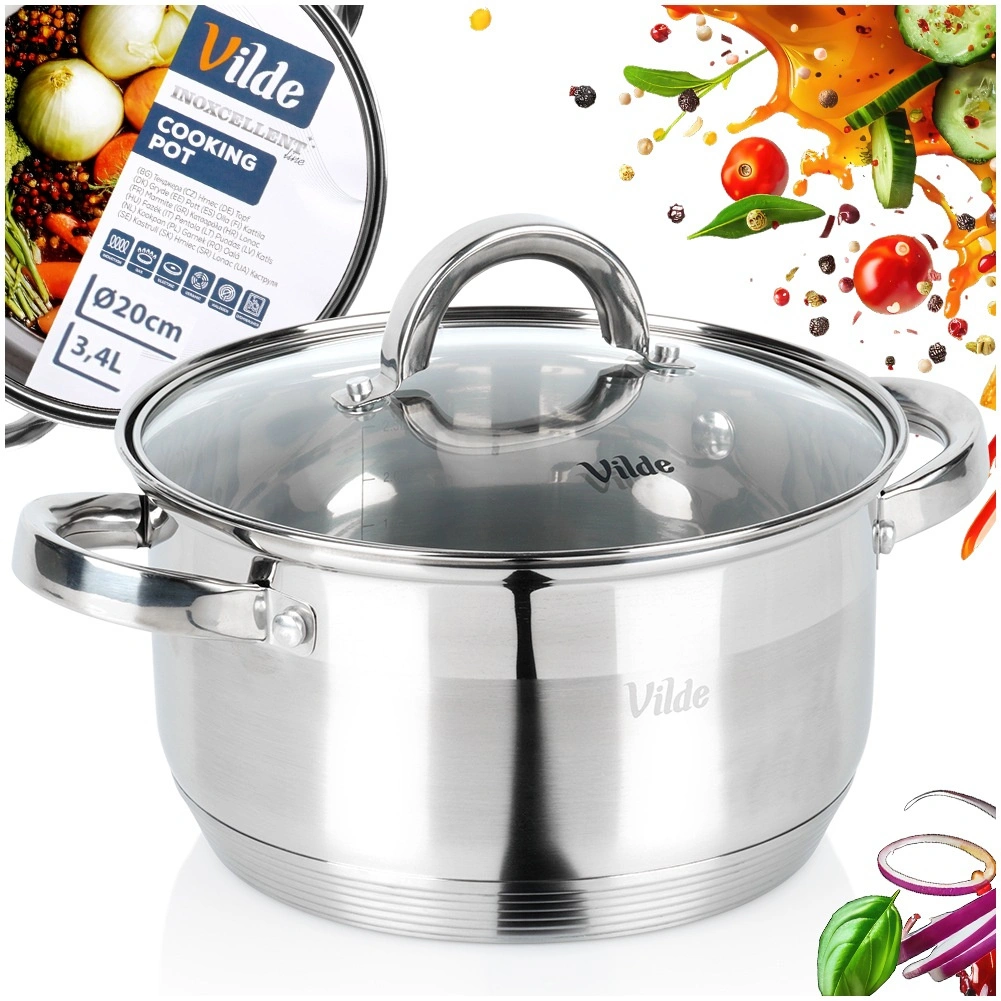 Praktisk rustfri stålkasserolle med et rumfang på 3,4 l og en diameter på 20 cm med glaslåg med dampeventil til nem madlavning, simring og ovnretter. Takket være den akutermiske bund Maximum Power varmes den hurtigt og jævnt op, er energibesparende og egner sig til alle komfurtyper, inklusive induktion. Højkvalitets rustfrit stål, let vedligeholdelse og mulighed for opvask i opvaskemaskine.