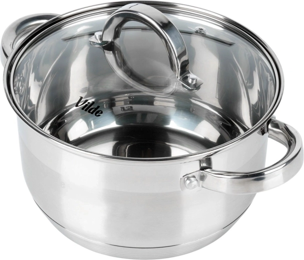 Rustfri stålkasserolle med glaslåg 20 cm, 3,4 l