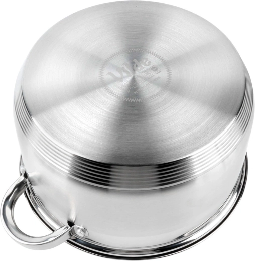 Den flerlagede akutermiske bund lagrer varme og fordeler den over hele grydenes flade. Du laver mad hurtigere, ved lavere effekt og med lavere energiforbrug.
