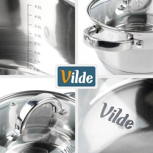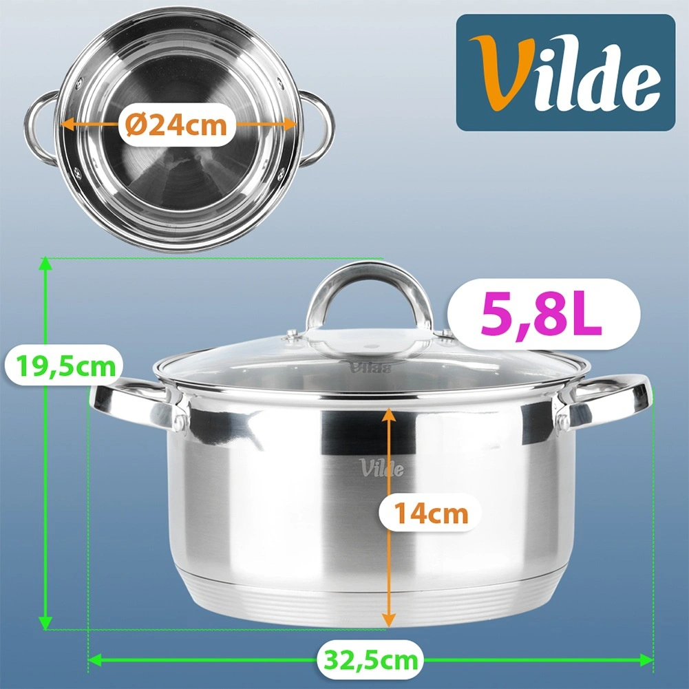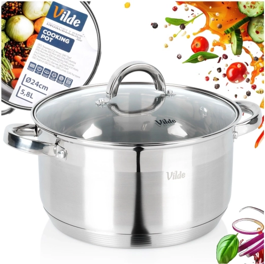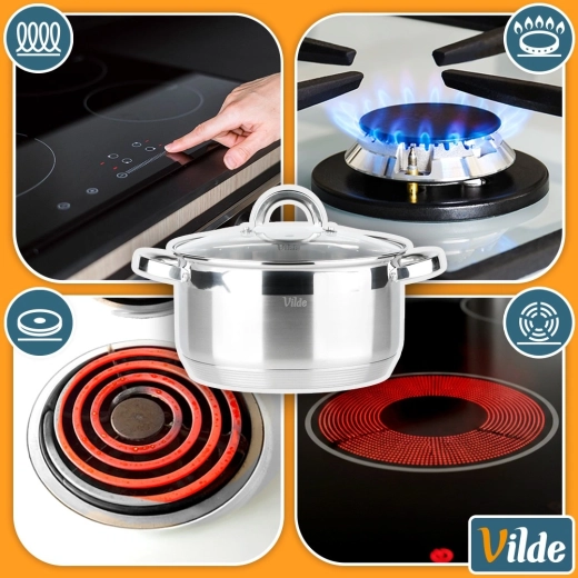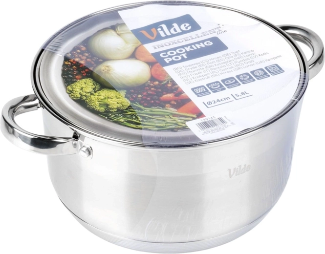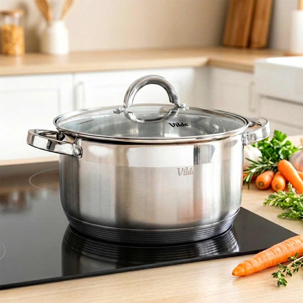 Dokumenteret kvalitet fra mærket Vilde i serien Inoxcellent, fremstillet i overensstemmelse med europæiske standarder. Gryden giver hurtig, ensartet opvarmning og muliggør madlavning ved lavere effekt – sparer tid og energi.
