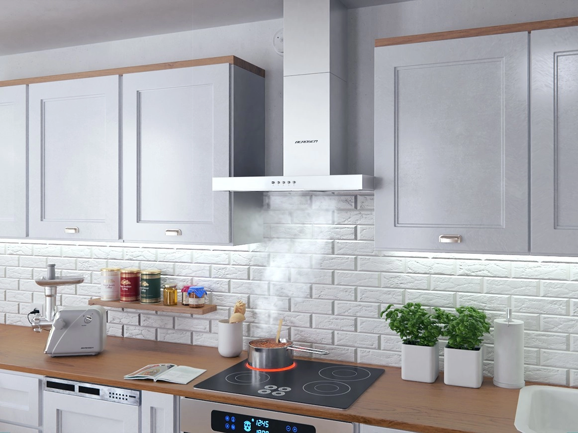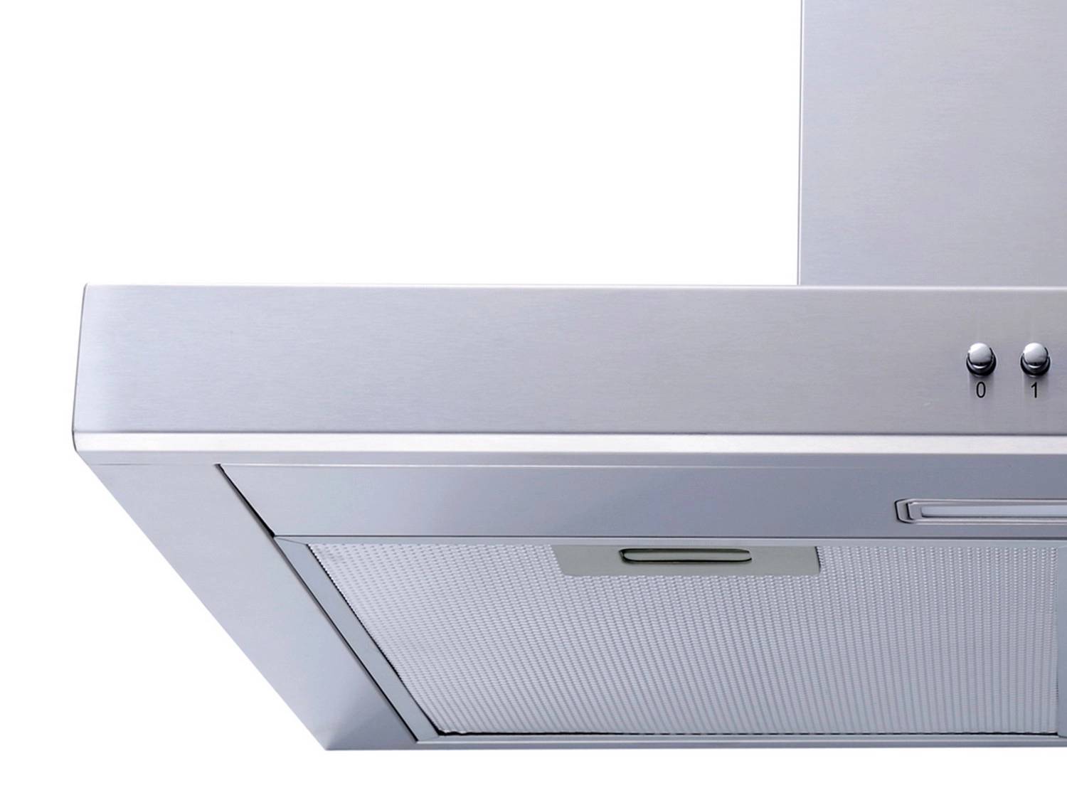 Kabinet i rustfrit stål INOX og 5‑lags aluminiumsfedtfiltre sikrer lang levetid og enkel rengøring.