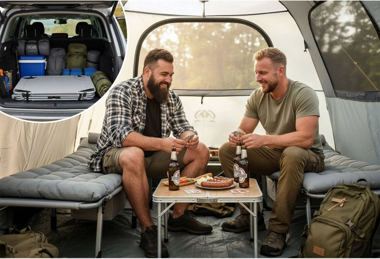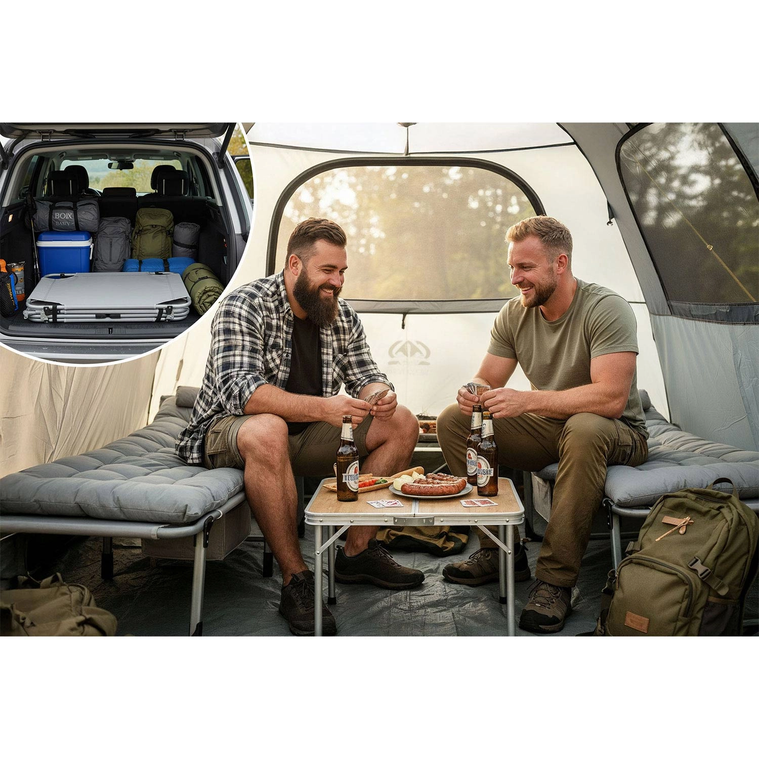 Camping, have, terrasse, altan, ekstra seng