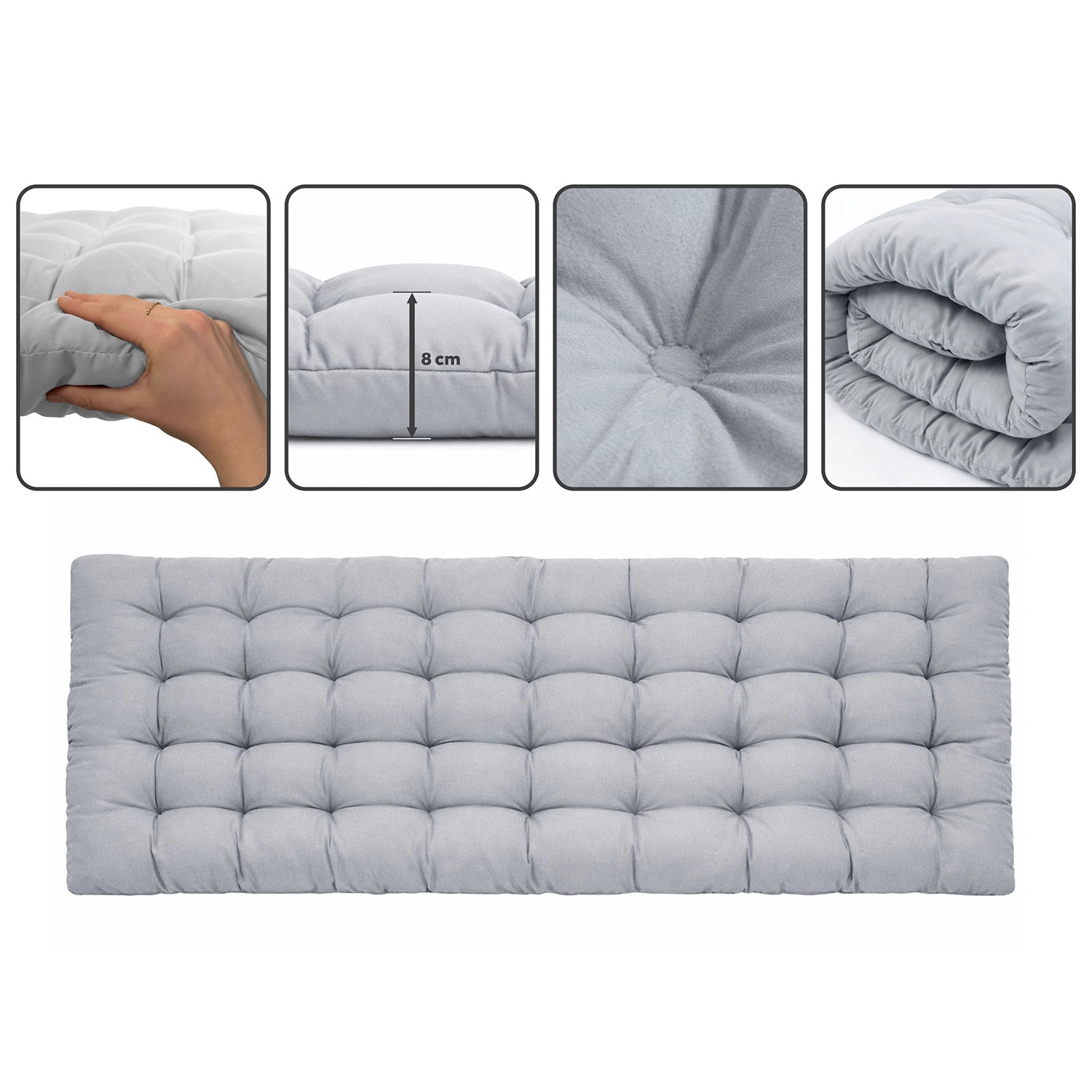 Brug den til camping, i haven, på terrassen, altanen, ved poolen og som en hurtig løsning til overnattende gæster. Den neutrale grå farve passer ind i ethvert miljø og komplementerer elegant din udendørs afslapningszone.