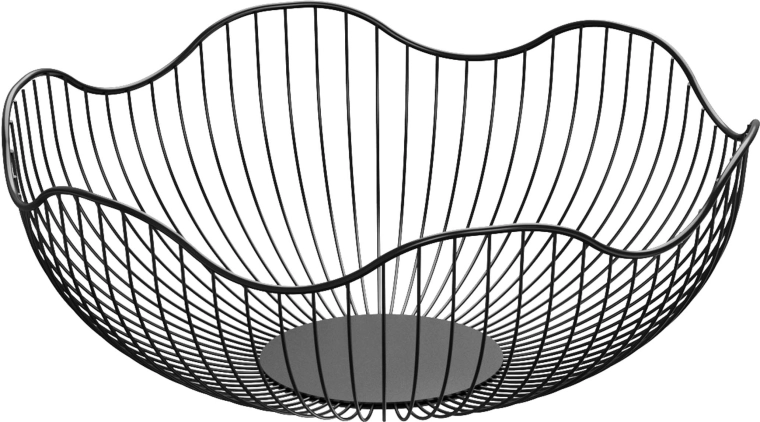 Denne minimalistiske trådskål er ideel til servering og opbevaring af frugt, brød eller dekorationer. Den sorte pulverlakering virker tidløs og er let at matche med både moderne og klassisk interiør. Det åbne design fremmer luftgennemstrømning, hvilket hjælper med at holde frugten frisk og pænt organiseret.