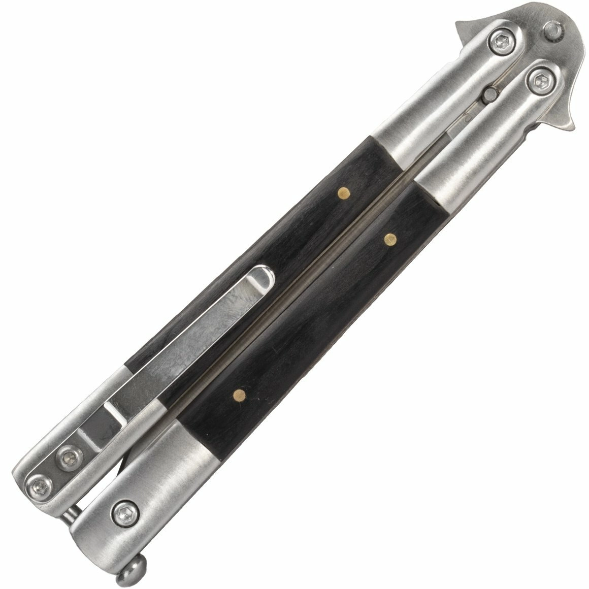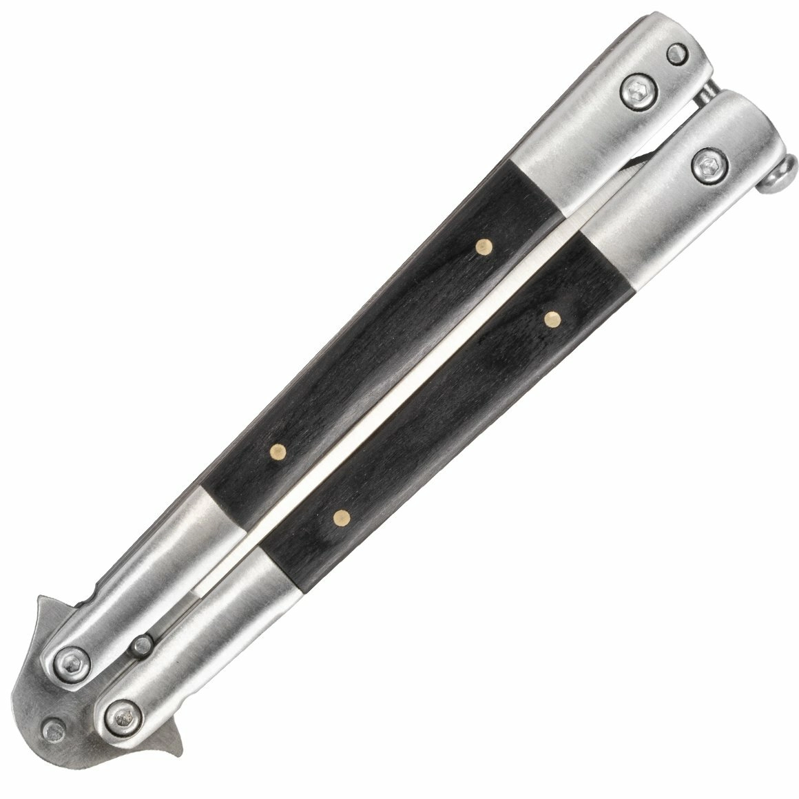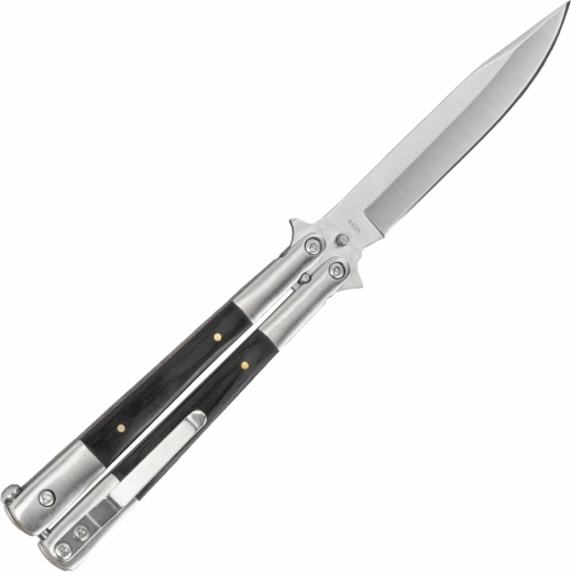 Den stilfulde balisongkniv Magnum kombinerer præcis forarbejdning, holdbart rustfrit stål 440C og et elegant skæfte af Pakkawood. Ideel til EDC, balisong-entusiaster og samlere – med jævn gang, en sikker balisong-lås og en alsidig klinge med satin-finish.